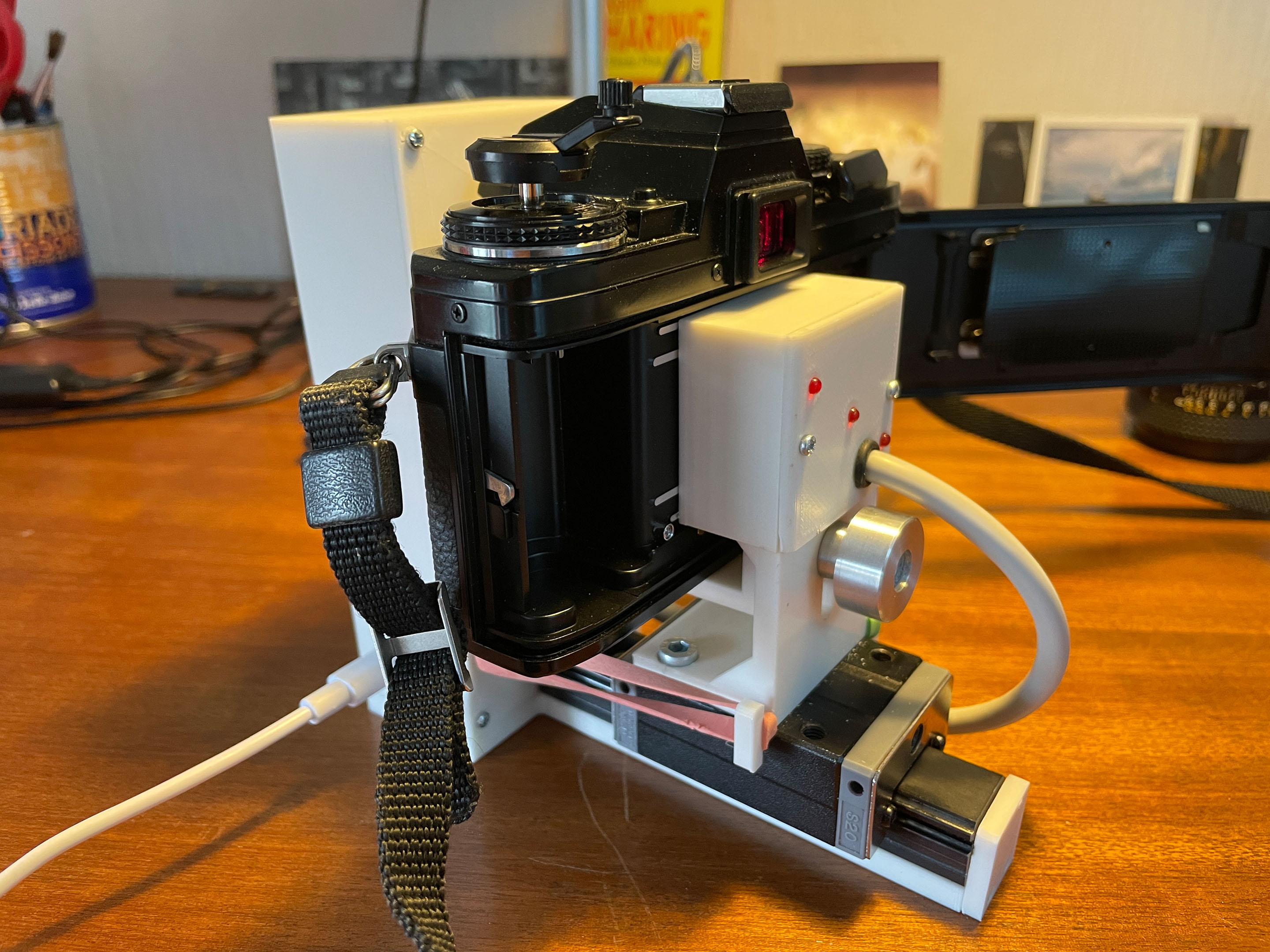 This was my first attempt at assemblying it. Since then I've added a small wood panel with smaller holes so the laser size is smaller and added a base so everything stays aligned.