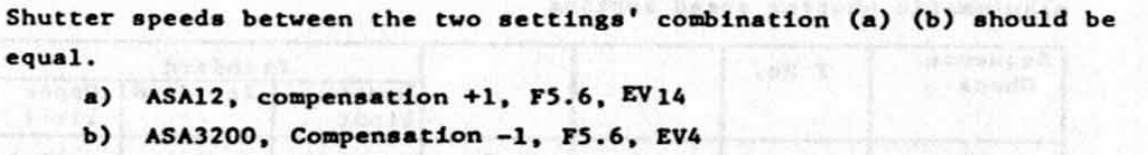 Adjust the lamp to give a light output of 4EV and repeat the process for the b) settings.