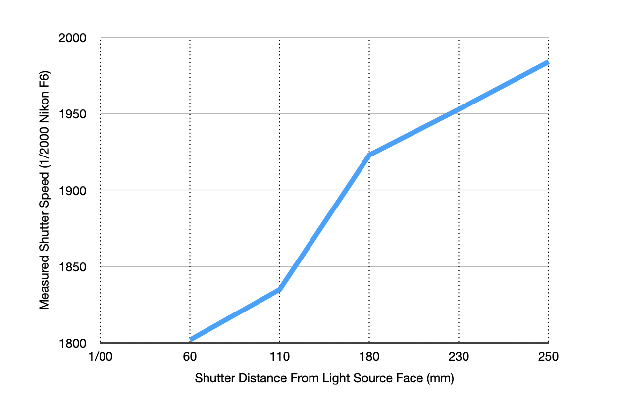 When turned up to the max, the light is too bright for our eyes to see the individual LEDs, but not so for the shutter tester. So if the light is not sufficiently diffused, different sensors will see differing light levels.