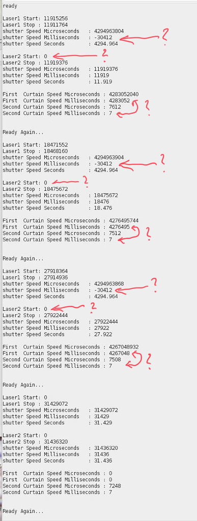 Although the blu-tack seemed to firm up after a day I'm still finding I'm getting a slow drift off alignment and think Xylo's thoughts on securing the lasers and receivers are a good idea. In particular I'm wondering if the Shutter2 star time of 0 results from misalignment. I'm puzzled by the weird milliseconds figure that appears at times and which bears no relationship to the microseconds figure. Hopefully I can get time next weekend to have another go.