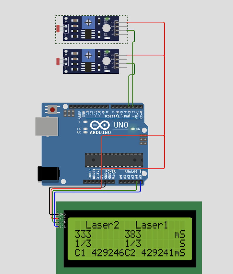 Attached is a quick sketch to check functionality of the lasers. No output to LCD, just to serial monitor in Arduino IDE.
