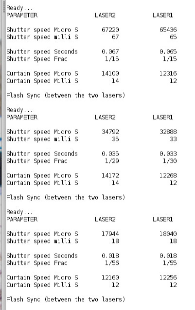 The only thing is that if you want to calculate deviation from the target speed, you need to know what the current target speed is. That's why I was going to loop round all the shutter speeds, doing a fixed number of tests on each.The average can be reset by the push of a button, so one is not limited to a certain number of firings.