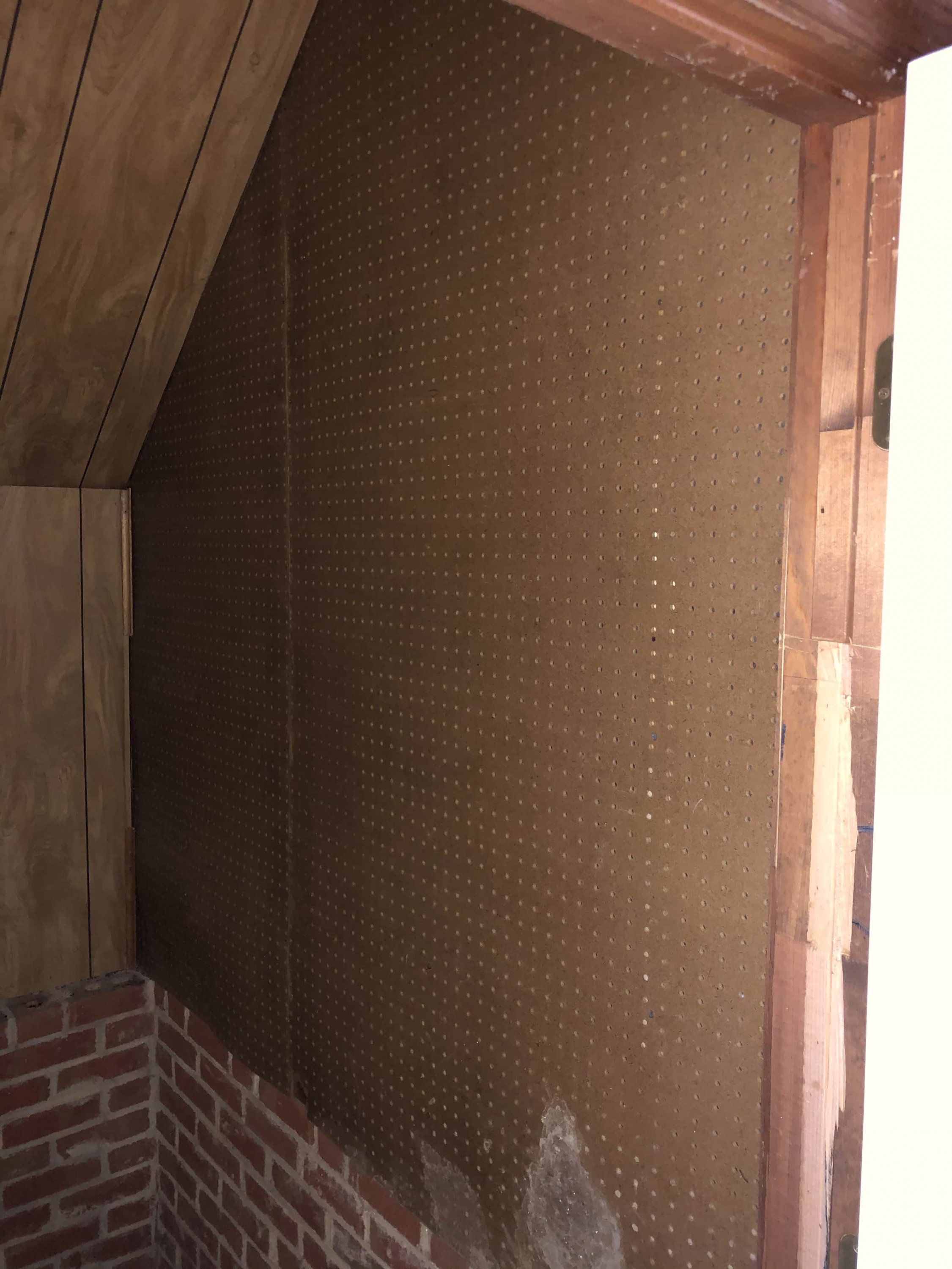 Trying to have a wet space in there will be a nightmare. The only (and I mean ONLY) way to do this is to have the enlarger table backed up against the stairs so that you walk straight in, close the door behind you, expose the paper, put it in a print drum, then walk out and process the print in the adjacent room. This could actually work quite nicely, as you already have pegboard for easy storage of neg carriers, dodging tools, etc., and the room itself would easily hold a Beseler 23C or something similar where you could print medium format and expose up to 16x20.