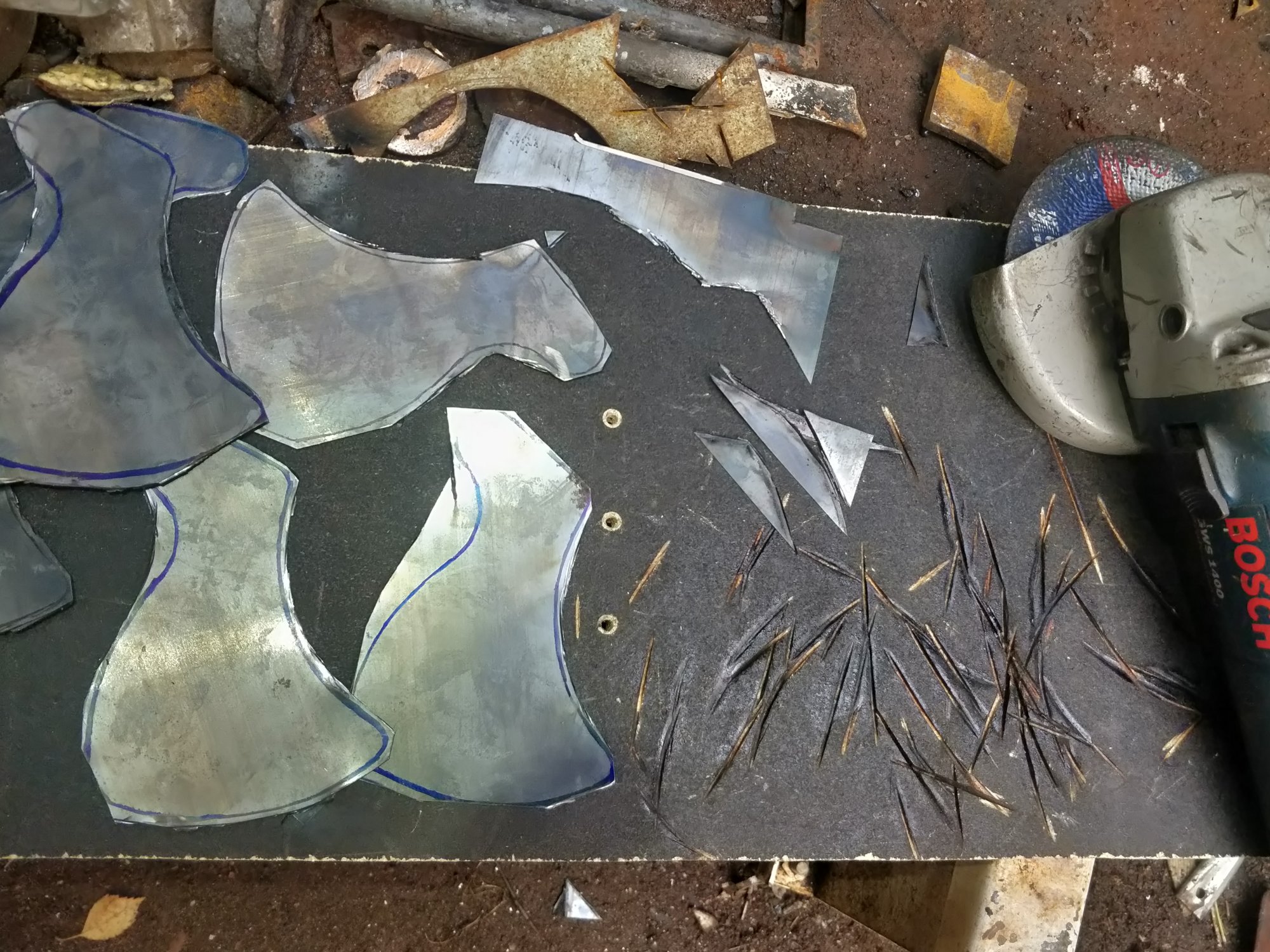 Leafs were cut out with angel grinder, because it doesnt warp or twist material, like tin snips.