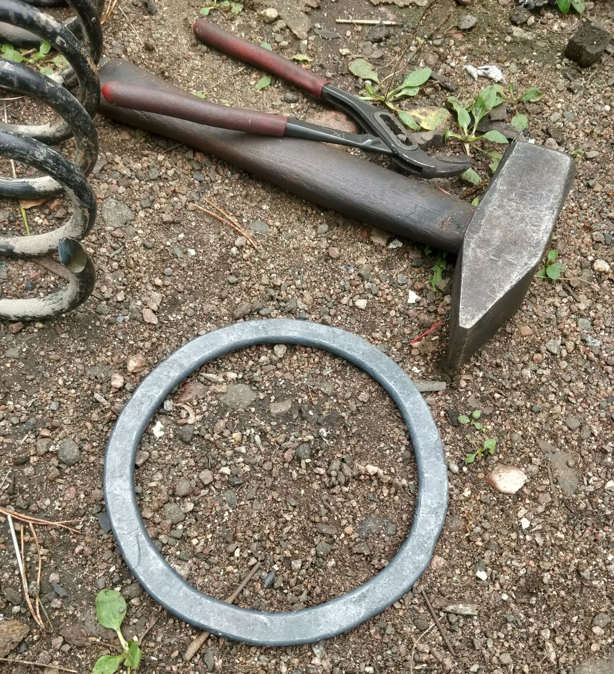 Found this car spring from trash, here its used to make a billet/blank for the ring that turns the leafs!