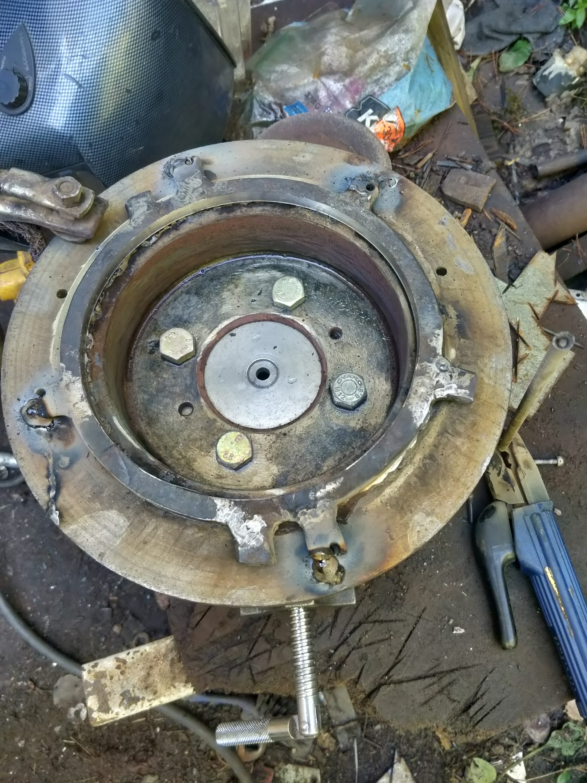 I have been making a mount from an old brake disk, to get the ring part to a lathe. Its coming out pretty all right so far. Ring has lost over half of its weight already and more is still coming off.