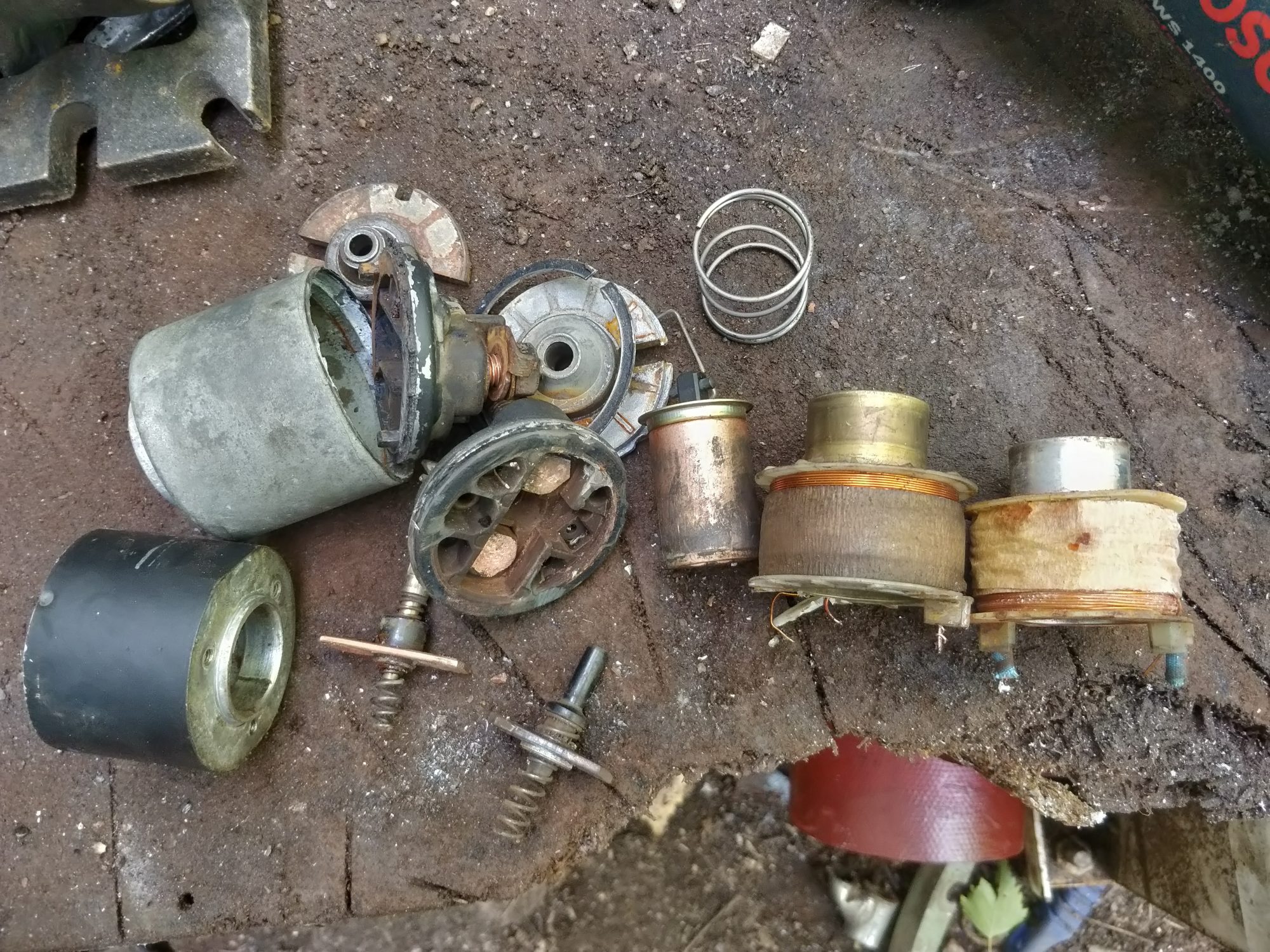 I took apart 2 car starter solenoids that was found from scrap. They seemed to be working still. They come much smaller and lighter when they were cut out of the steel casing and contact bits. Only coils left.