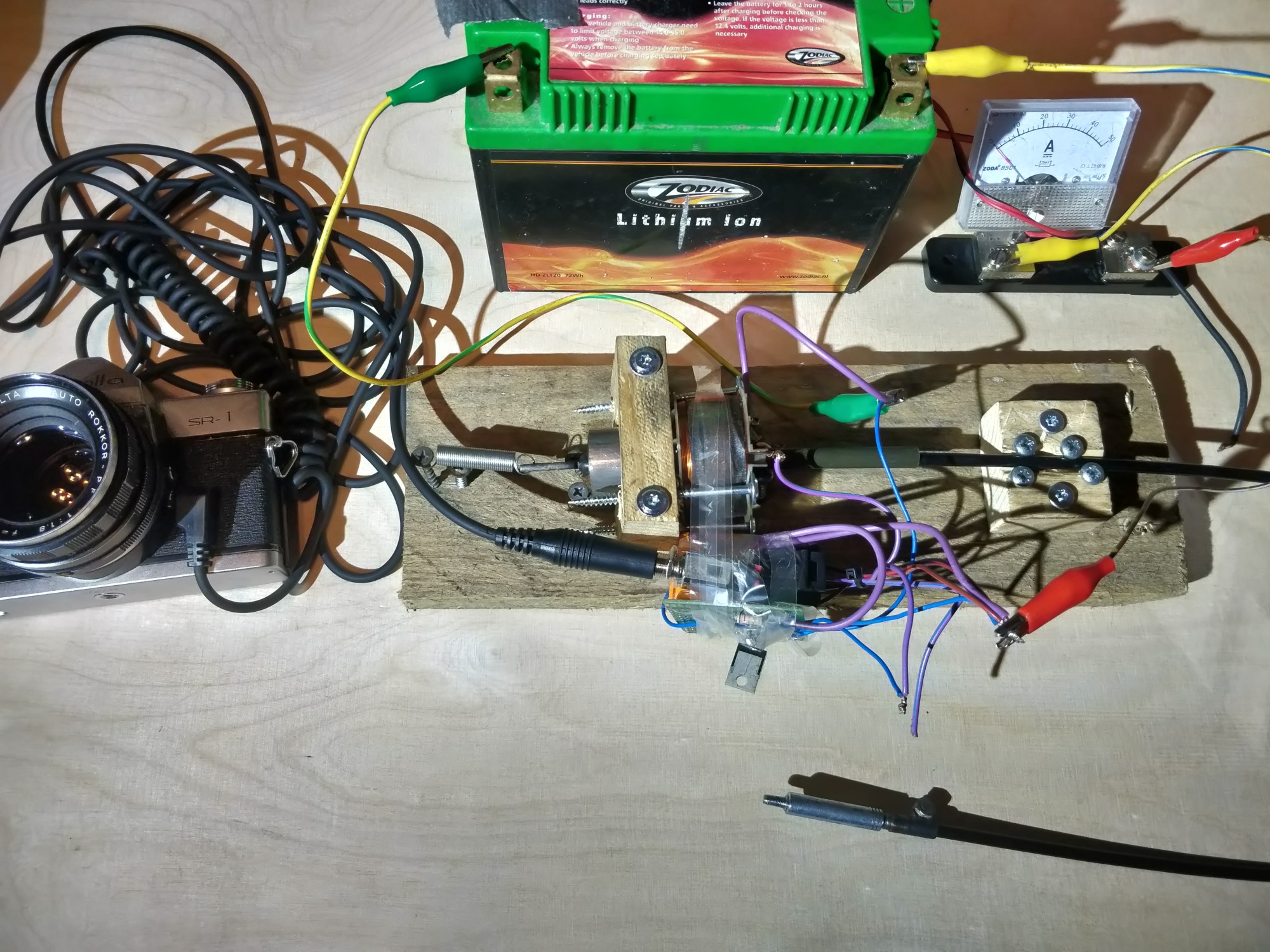 Minolta slr camera's flash sync is used as a clockwork for solenoid, and its connected to diy circuit board.