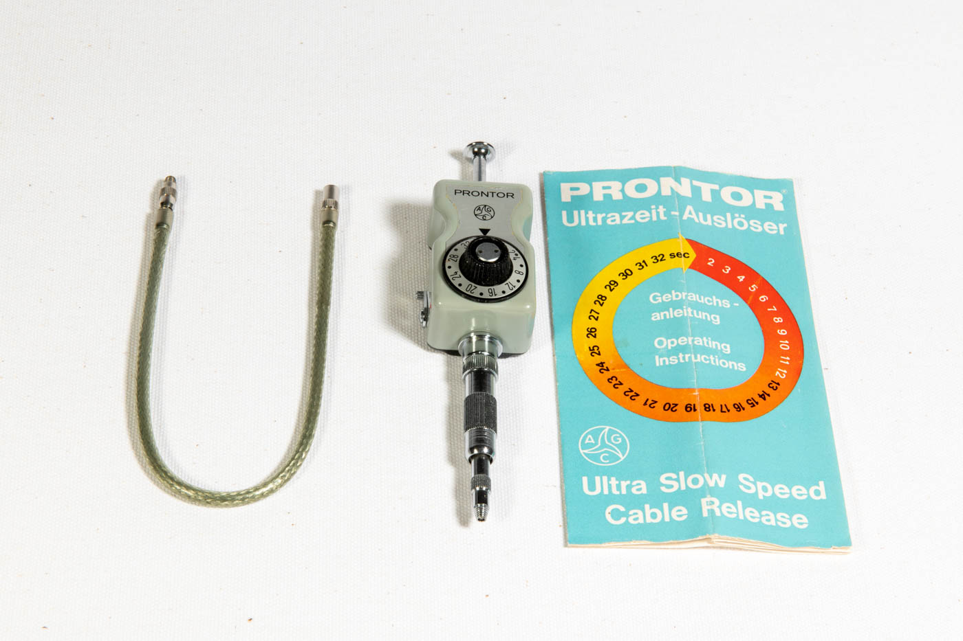 For this round, I have some cable releases, all used. One Linhof, one Ebony and two Minolta (these were always my favorite) and a Prontor.
