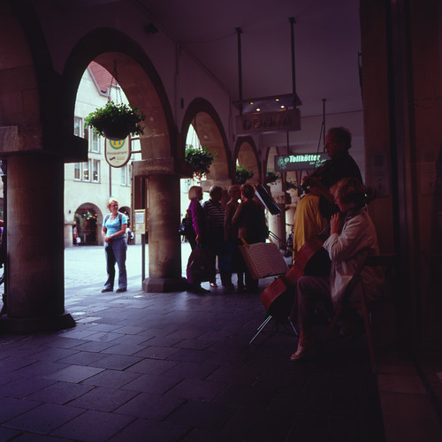 I calibrated the scanner againts all IT8 targets (4) to have calibration for practically any Fuji slide films. For testing I chose a less dramatic slide - one with neither too strong shadows or highlights or color saturation - to first see whether the "easy" scans will come out properly (or close to that). Below is a crop from a 6x6 slide - Provia 400X taken in shade in Alhambra, Spain.