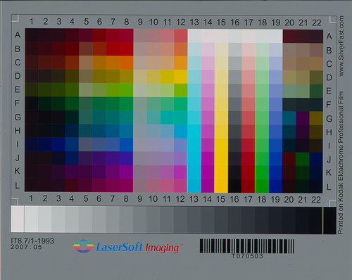 First I had only Ektachrome IT8 target that came with the SilverFast Studio version I have. The calibration process is simple and after calibration the scan of the calibration slide looks fine:
