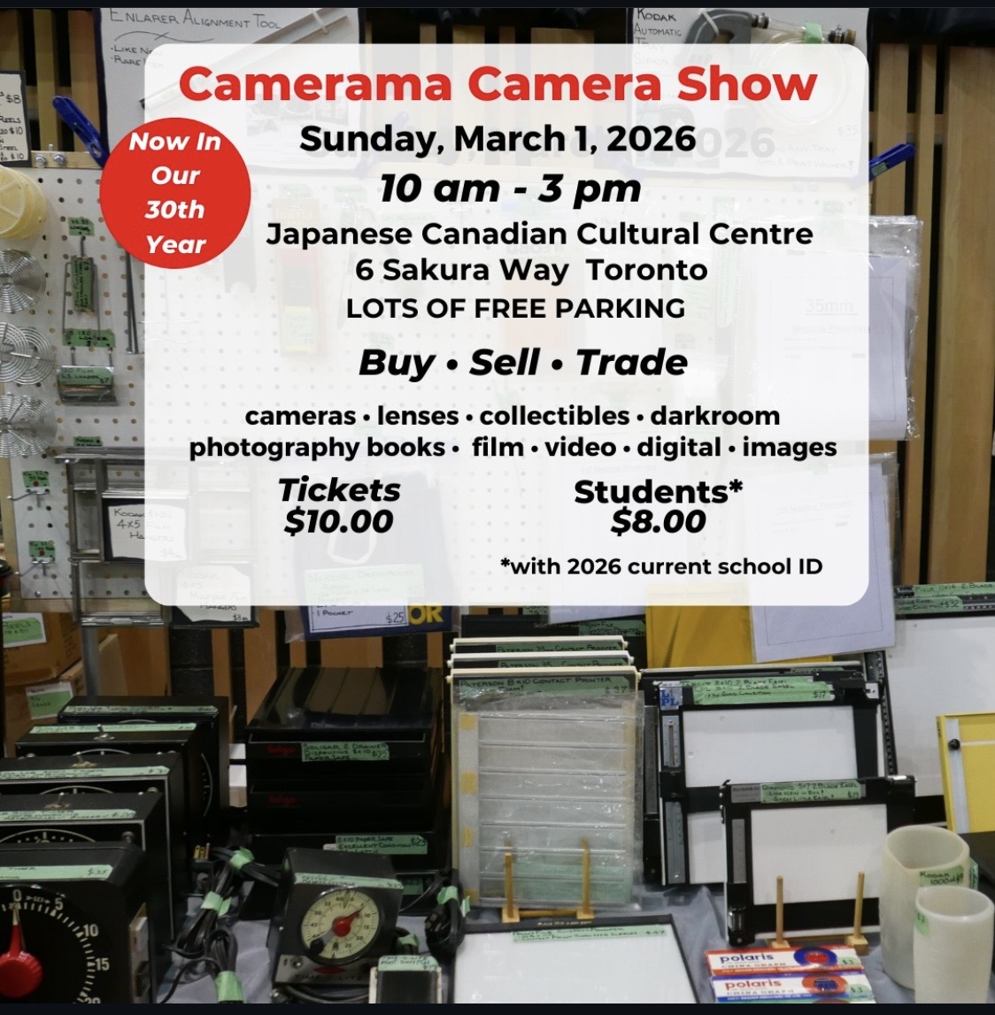 The Spring Camerama Show is this Sunday, March 1, 2026 in Toronto. If you are going, drop by and say hi! I’ll be the one with an Ilford darkroom apron by the tables with darkroom gear. All the Todd