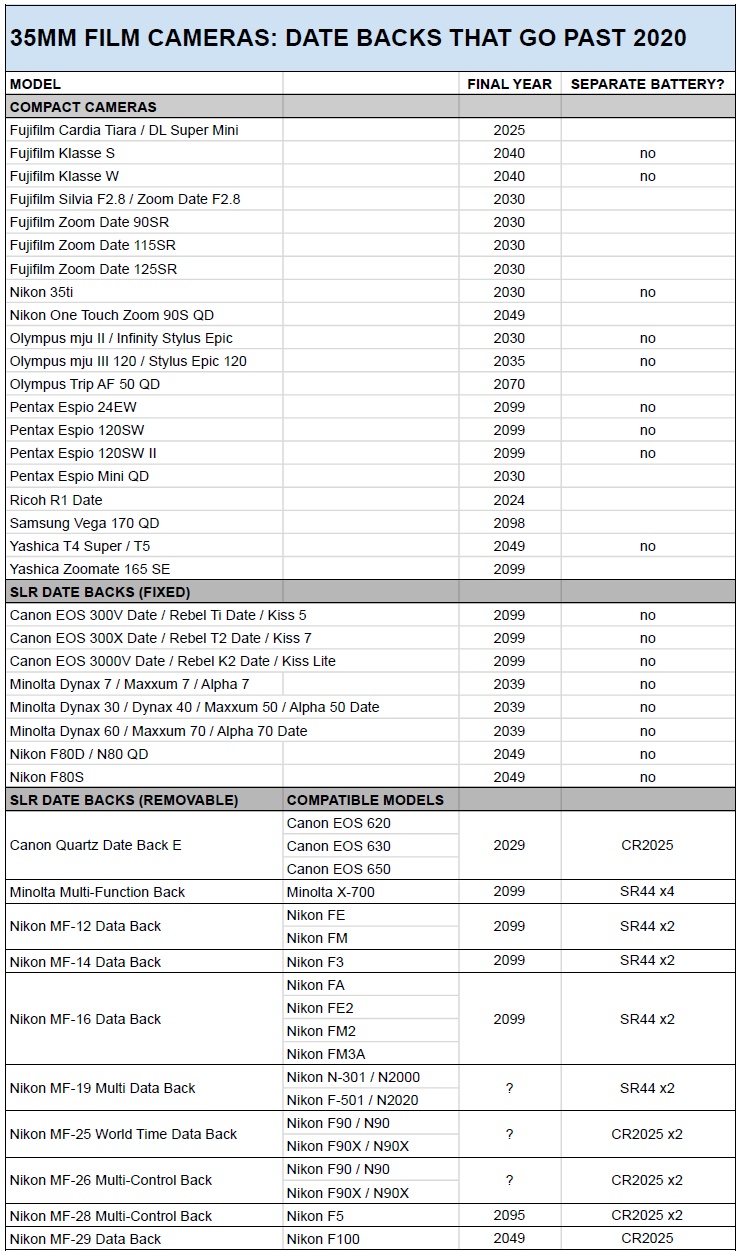 Cameras with quartz date/data backs going past 2020