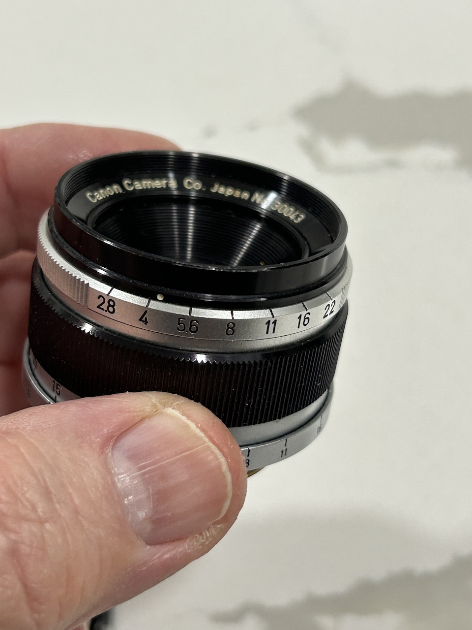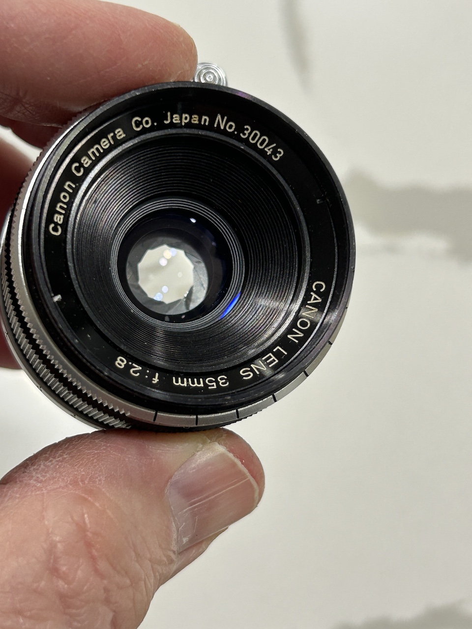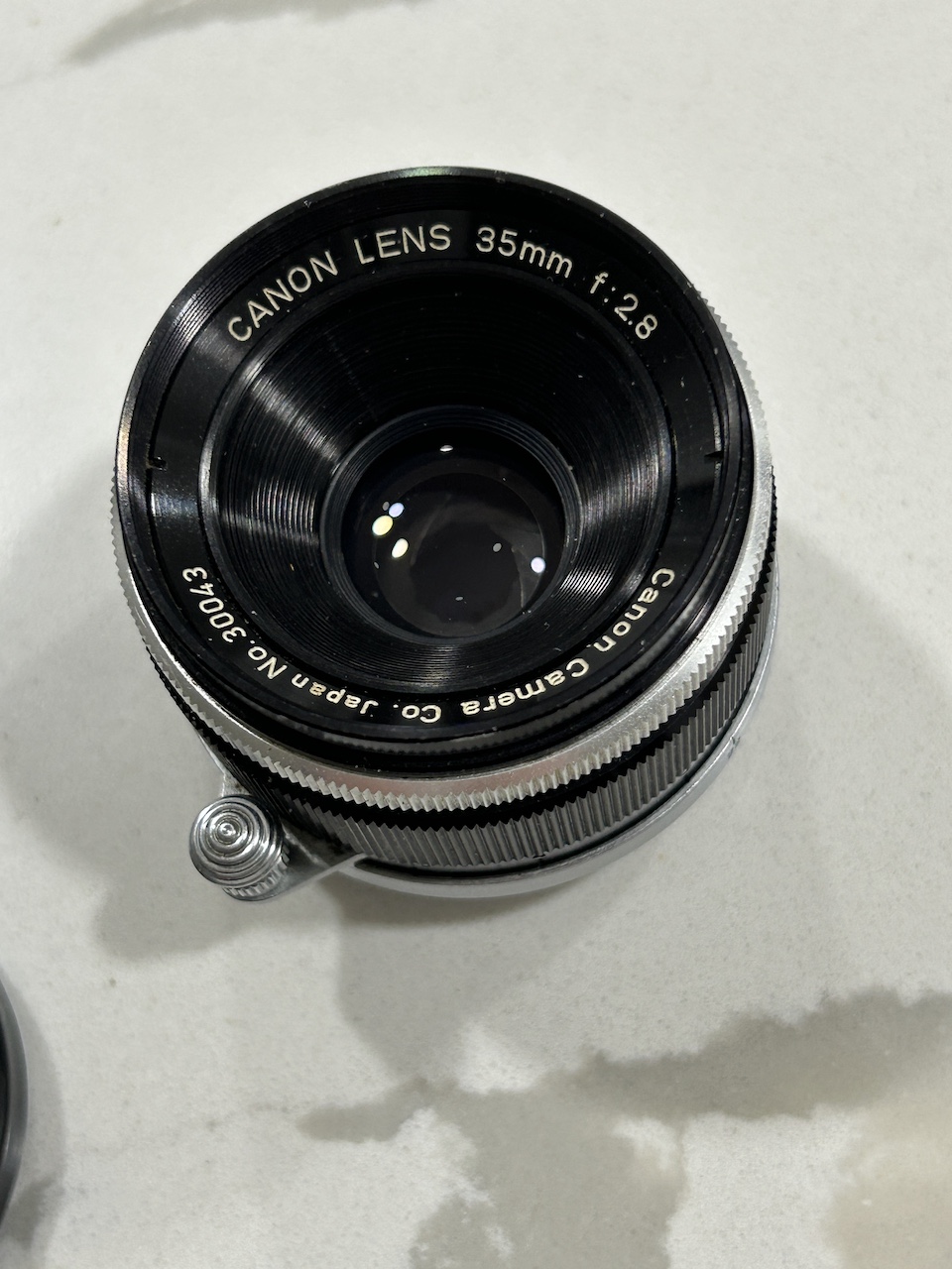 I am selling an exceptionally fine Canon 35mm F2.8 for Leica thread mount. This is the late Canon Leica thread system era version of this lens in black finish, said by some to be optically superior to the earlier chrome finished versions.
