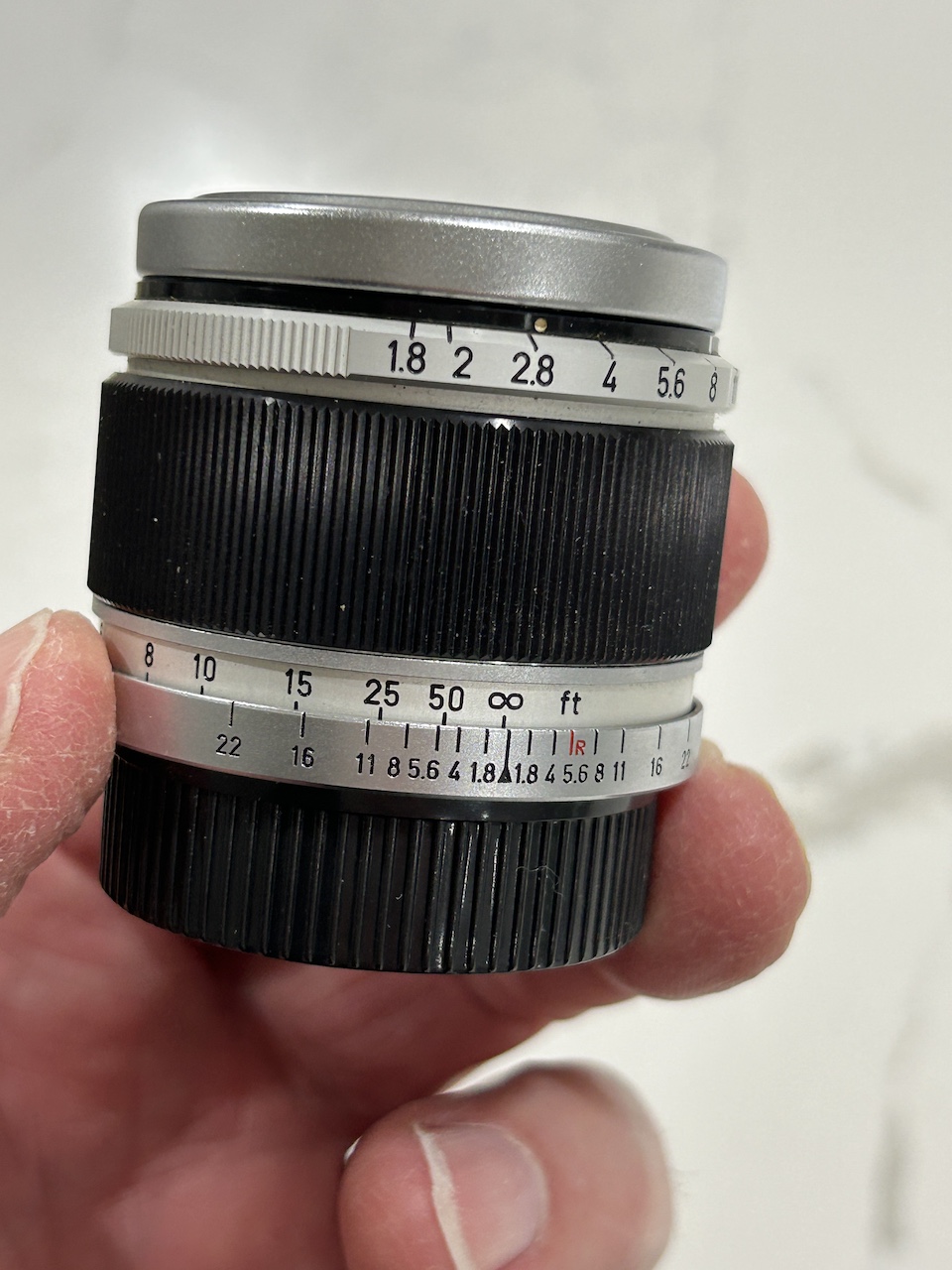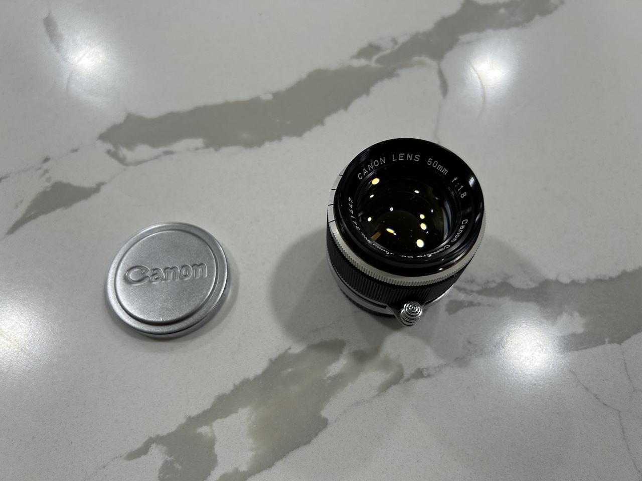 I am selling a Canon 50mm F1.8 rangefinder (Leica thread mount) lens in superb condition in all respects. Included is the original Canon front metal cap and a new aftermarket rear lens cap.