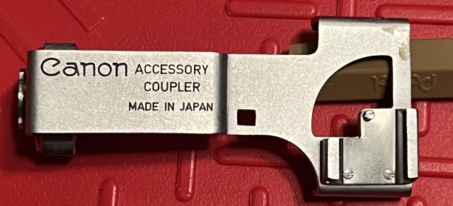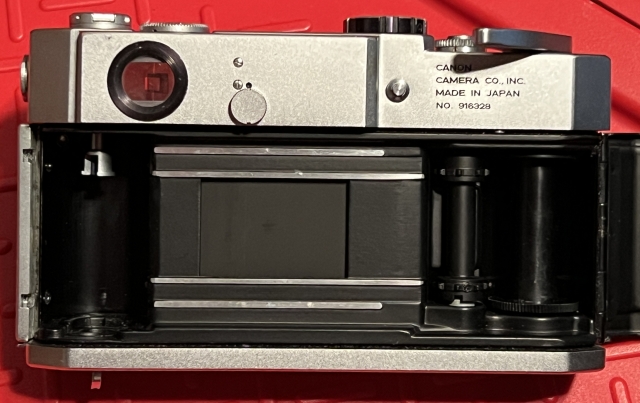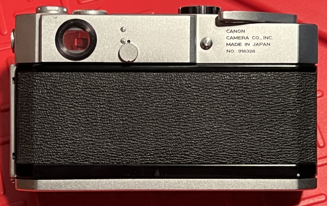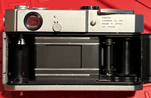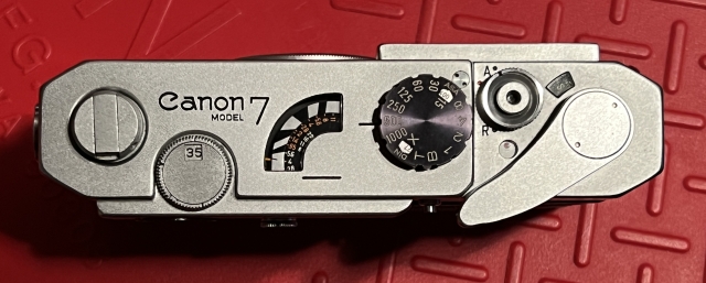 This Canon 7 LTM body is in very good user condition and comes with the rarely-seen accessory shoe attachment. This add-on grew out of Canon's inadvertent omission of a cold shoe on the body itself, a mistake rectified on the later 7S. While I haven't tested the shutter speeds directly, my film tests over the entire shutter speed range show uniform exposures. The meter does respond to light but I wouldn't trust it and never even bothered testing the accuracy of this 60+ year old selenium cell.