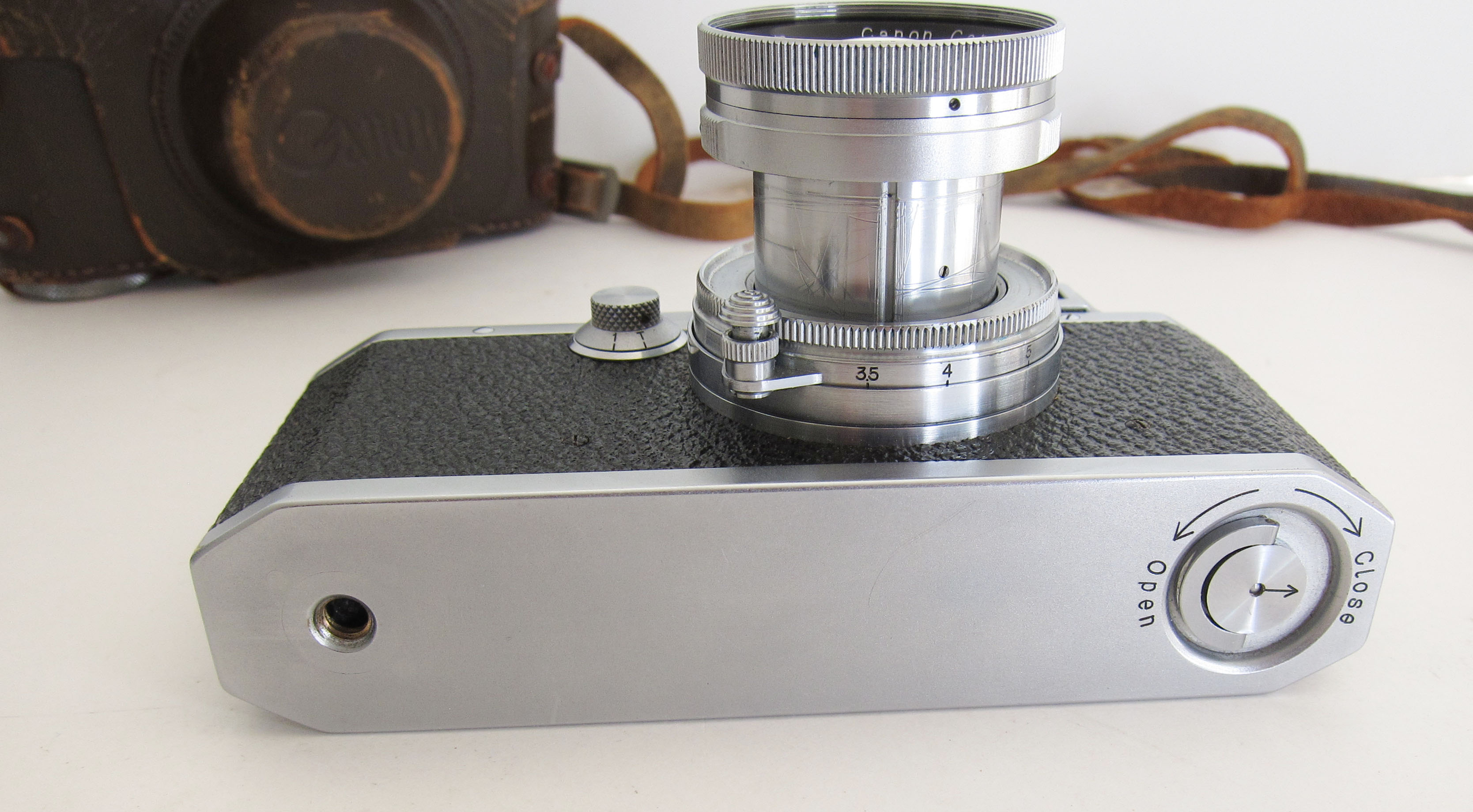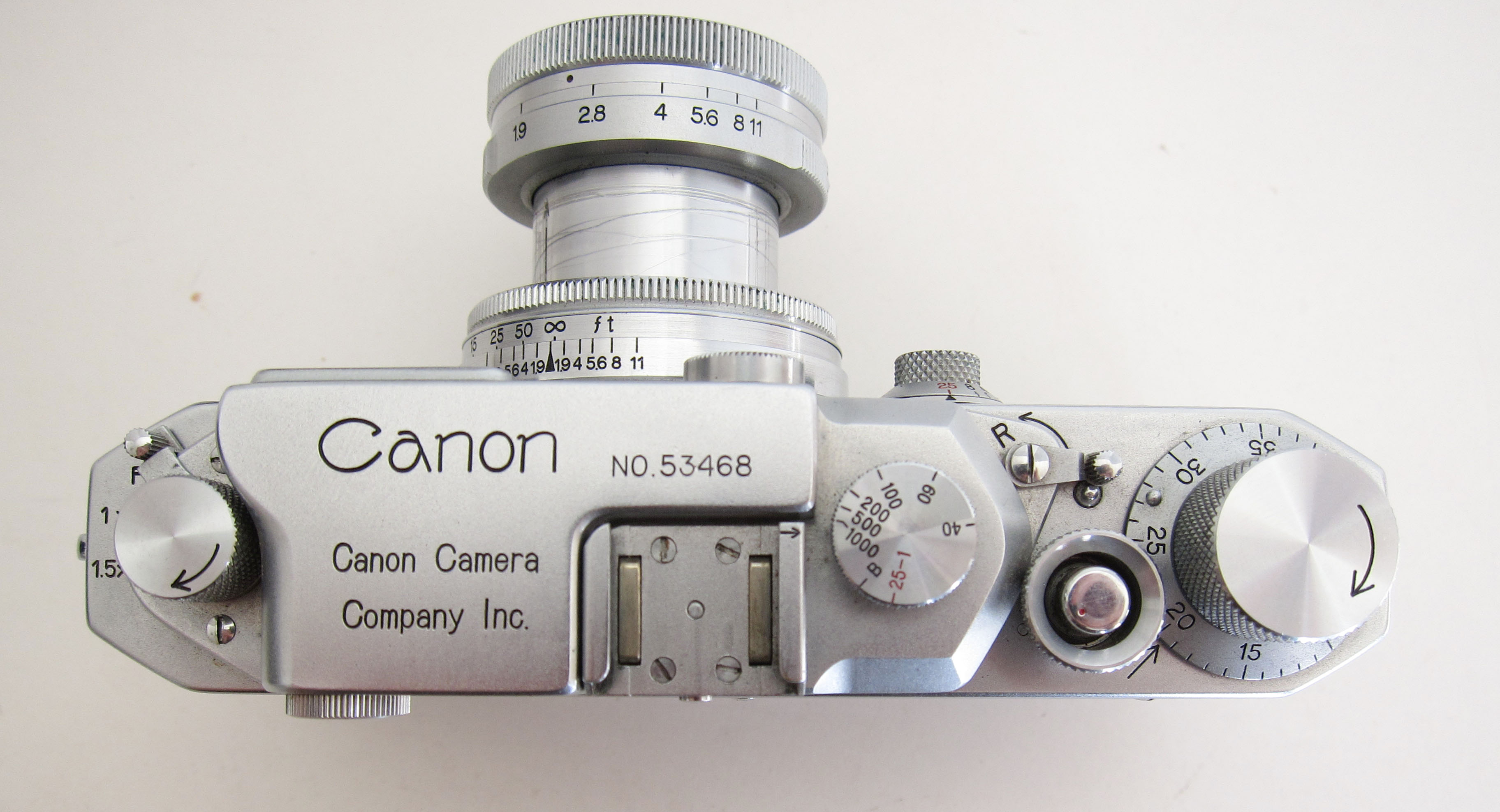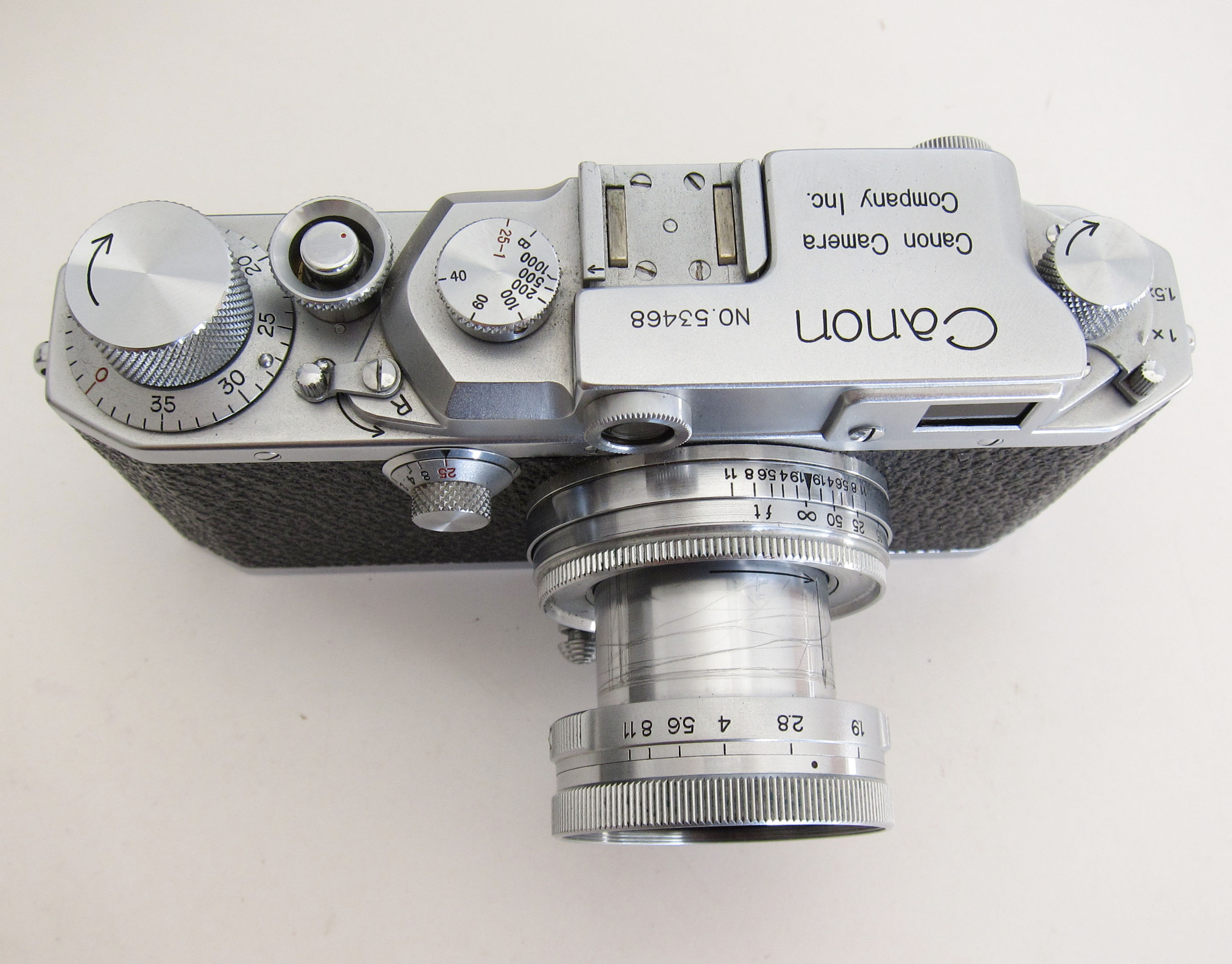 Cosmetics excellent. Lens glass looks in good condition. Lens barrel has gouges in extending part.