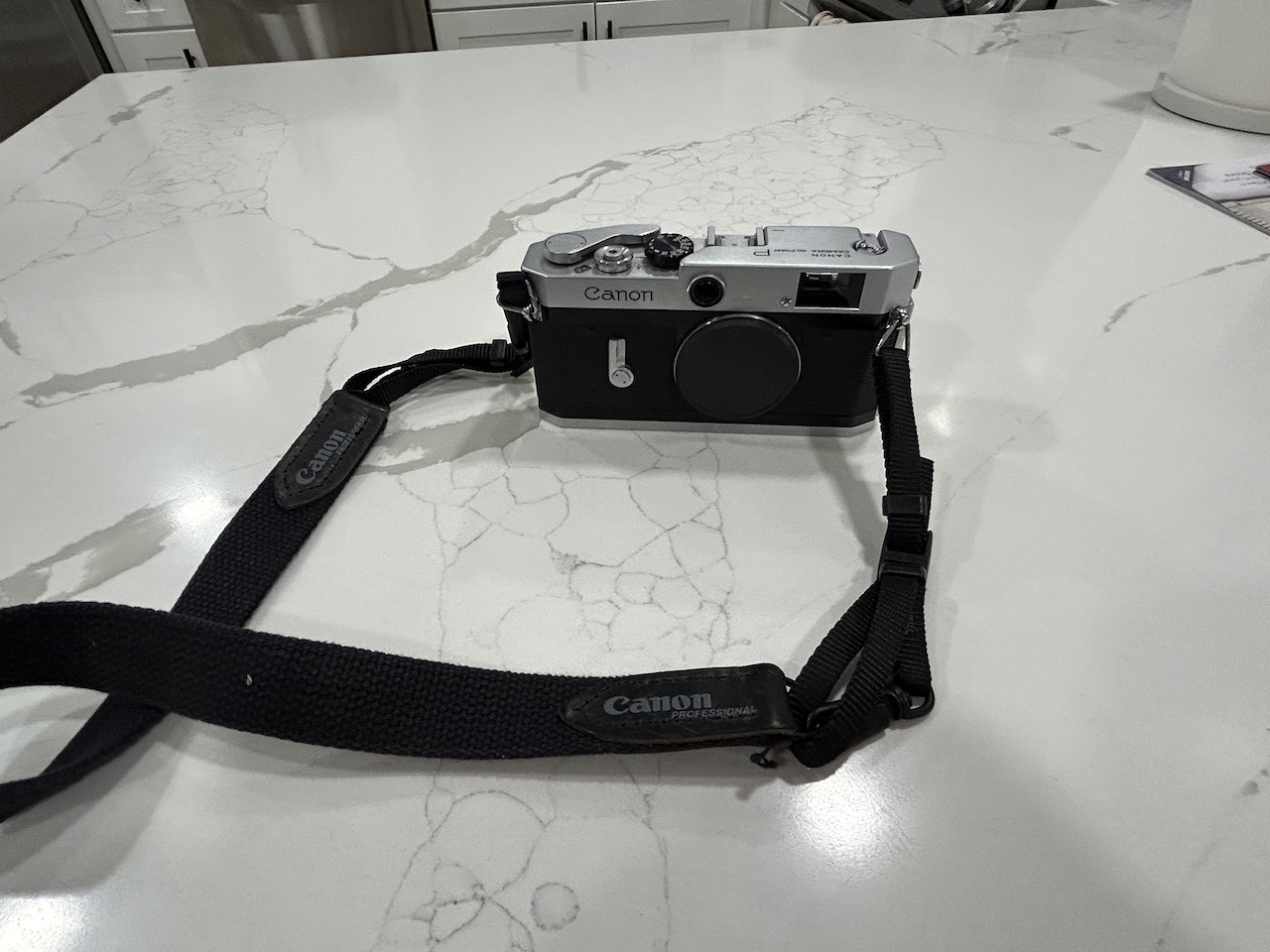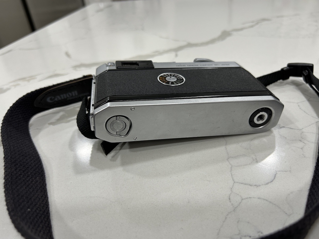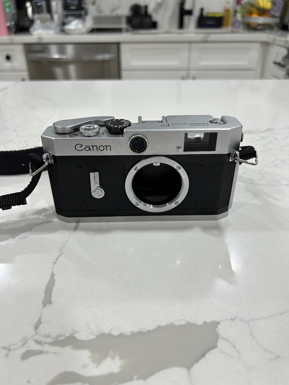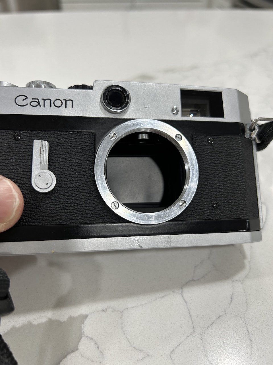 I am selling a beautiful Canon P Leica thread mount rangefinder body. The cosmetic condition is excellent and the camera has seen very little use. The shutter speeds, finder, and mechanisms are all fine. The metal shutter curtains are clean and smooth. The rangefinder patch is bright, but very slightly off in the vertical direction and at infinity. The intermediate distances seem quite accurate. None of this has any significant impact on use. The rangefinder calibration is also user adjustable (if you have some fine jeweler screw drivers), but I'd rather leave that up to the new owner as I don't trust my own skill level to do this.