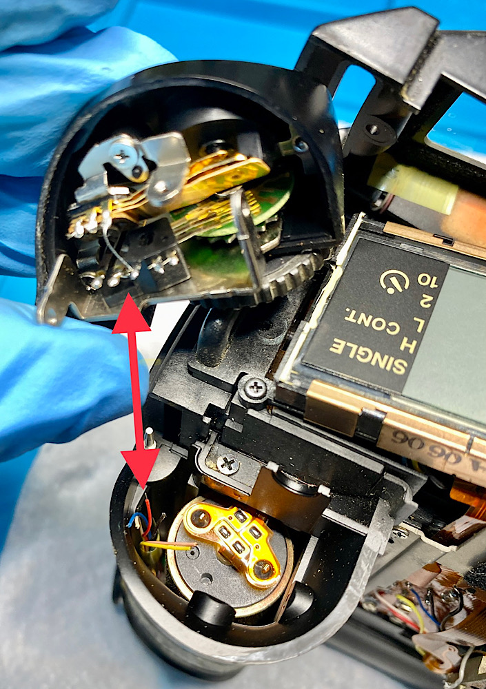 I tried spraying it along the shutter release button and the spot metering button when the camera was not disassembled, but none of it reached the contact plate.