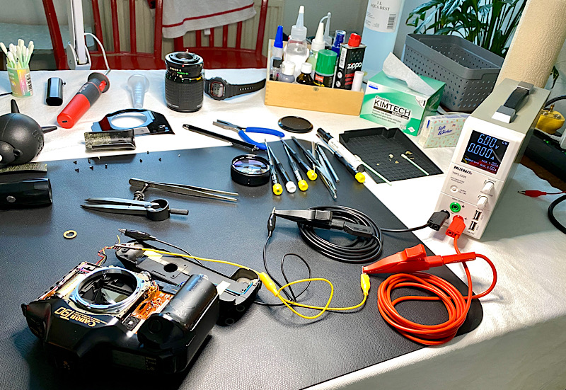 So I unsolder the battery compartment and connect the T90 to my 6 volt laboratory power supply.