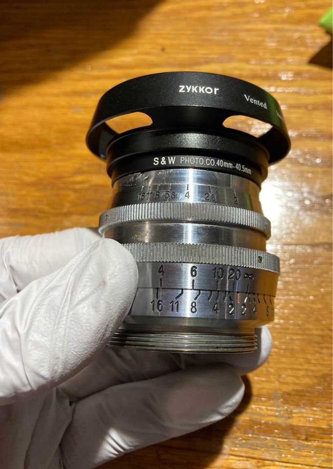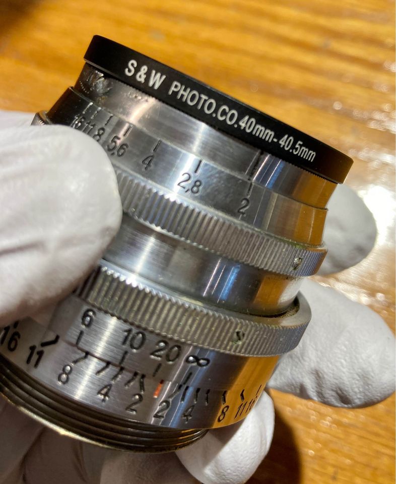 The lens rim had a little damage to one area, so I screwed on a 40.5 to 43mm adapter ring to the lens. Now, you can fit 43mm filters (a B&W haze filter included !) and a lenshood (vented hood included!).