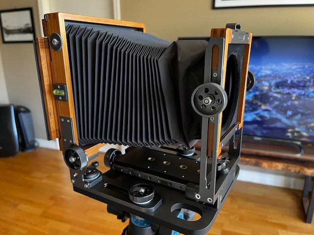 Comes with ground glass cover and camera bag from factory. Camera body only (tripod and head not included).