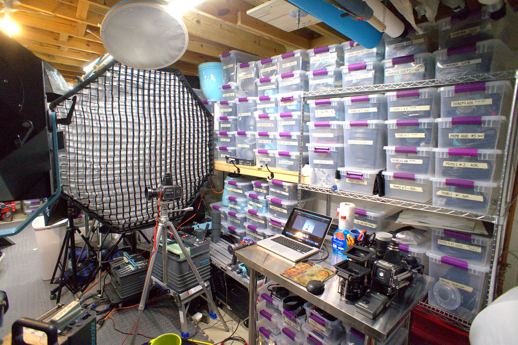 All of my Broncolor Strobe Heads and Monolights have been throughly tested, two Power Packs replaced. All equipment boxed and labeled, easy to find everything now. Olde Mac Pre-2013, hooked to Hasselblad CFV16 Digital Back and functioning well. Need a large mousepad for the rolling steel work table. Hasselblad stuff is boxed down below. You can see I finally got a Grid for my Octobox 150! Love it. I tried three times to buy a used one from Adorama, the webpage was jacked up, they sent three times another Octobox 150! which I sent back each time. Finally ordered one direct from Broncolor. Oh Well. You can also see my Olde Beauty light on the Manfrotto Boom Arm, over the top of the Octobox, ready to use, leave it set up all the time.