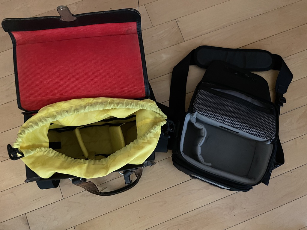 Both bags comfortably hold a 500CM camera and an 80mm lens. Or a rolleiflex, with a hood and rolleinar.
