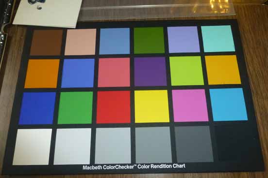 Has color and gray scale patches.