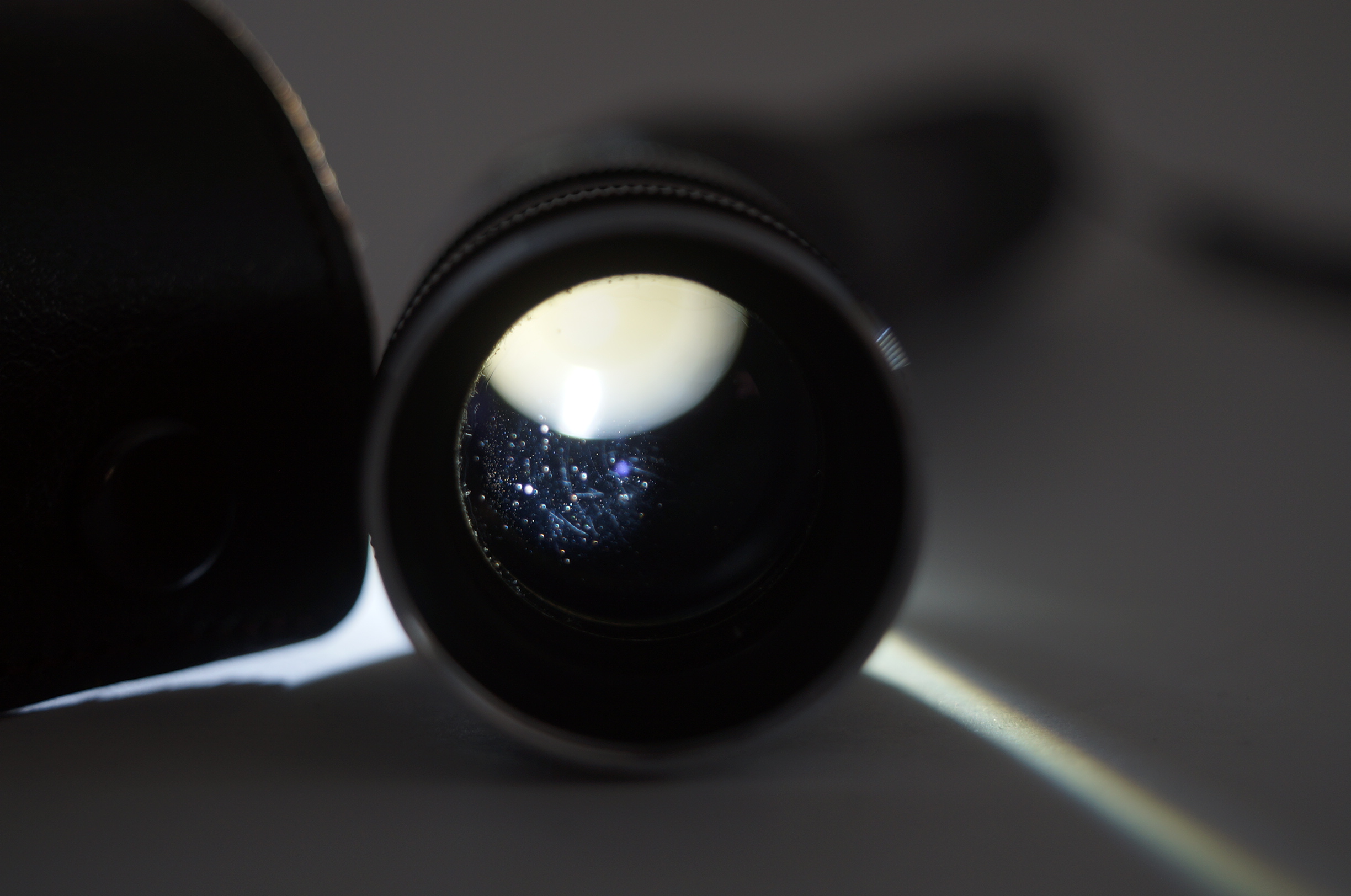 There are some coating marks and dust on the front lens surface, but internally it looks very clean.