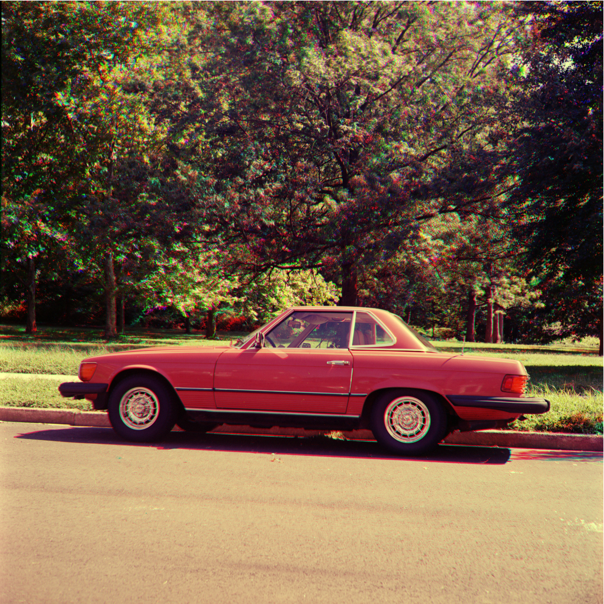 This is FP4+ on my Zeiss Ikoflex Ia TLR, in Pyrocat HD for 18min. Wratten #29, #58 and #47 filters, at +4/+3/+3 stops respectively. In GIMP I mostly followed the instructions at http://archive.brhfl.com/ph.brhfl.com/2012/09/07/gimp-trichromes/ with Saturation at 100%, and Lightness at -50% for R/G, and -67% for B. That was the only special handling of the blue layer, and next time I may just expose it less instead.