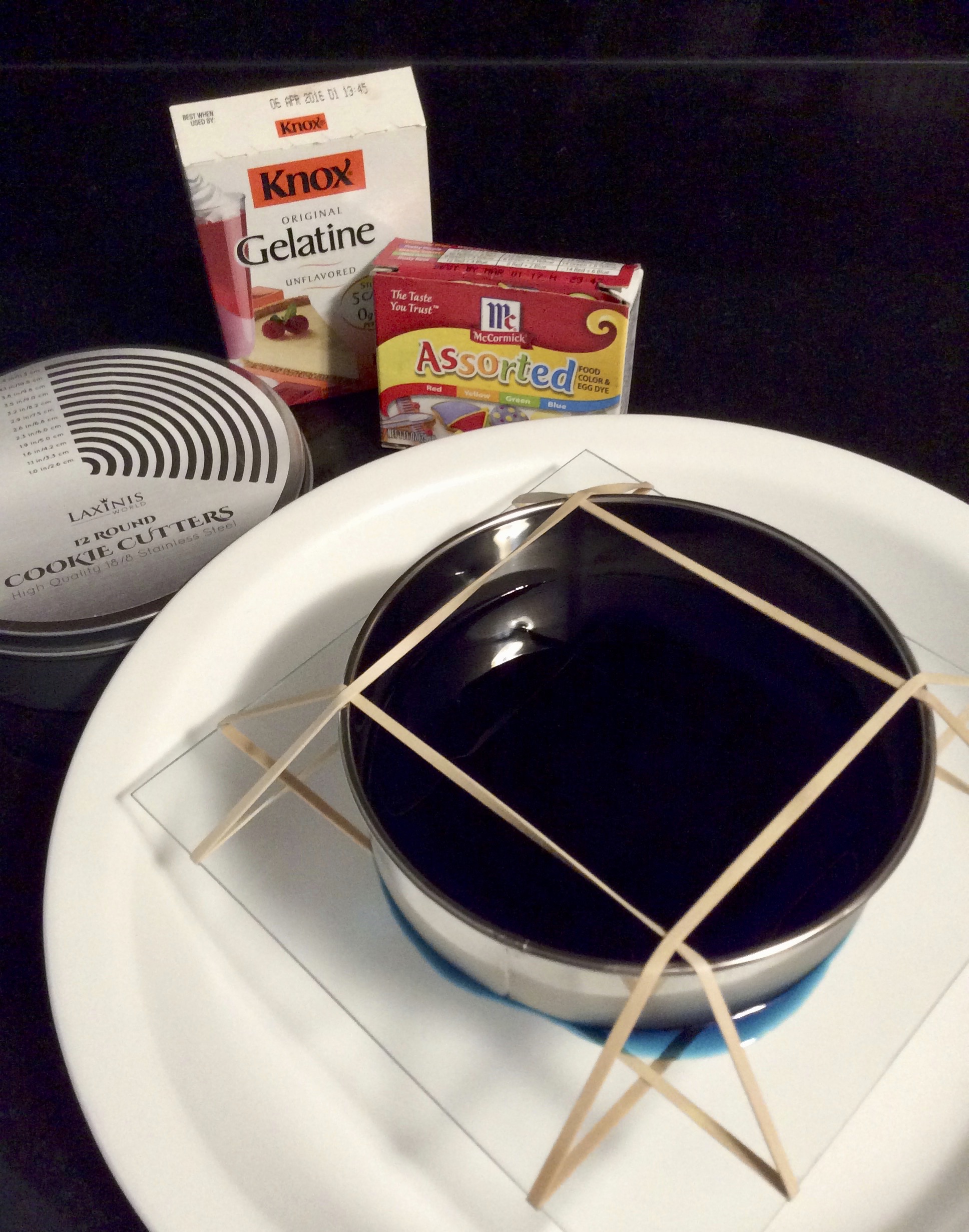 Decided this would be a good science experiment with my kids & they are on board (never a given). I've got red and green but no blue filters, so we are starting with improvising a "gel" in the kitchen: