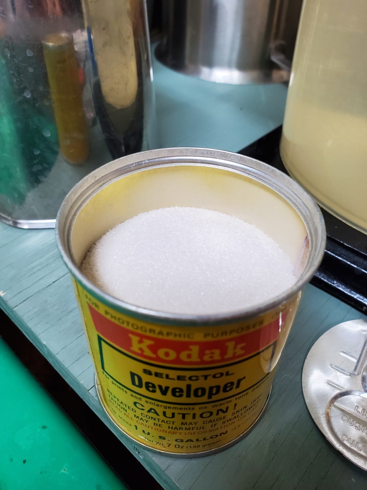 I mixed up a can of Kodak Selectol, produced in 1969. Typical of the old EKCo, perfectly white crystalline material of uniform size to prevent separation. Works fine. And when your done you have a neat empty can. Nobody made (or sourced) photo chemicals better than Kodak in it's prime.The best marketing move Kodak could (and should) make, would be to offer their powder chemistry in tin cans, or even in glass bottles. Ok, would be 1$ more expensive, but well worth it on so many levels, including the customer experience.