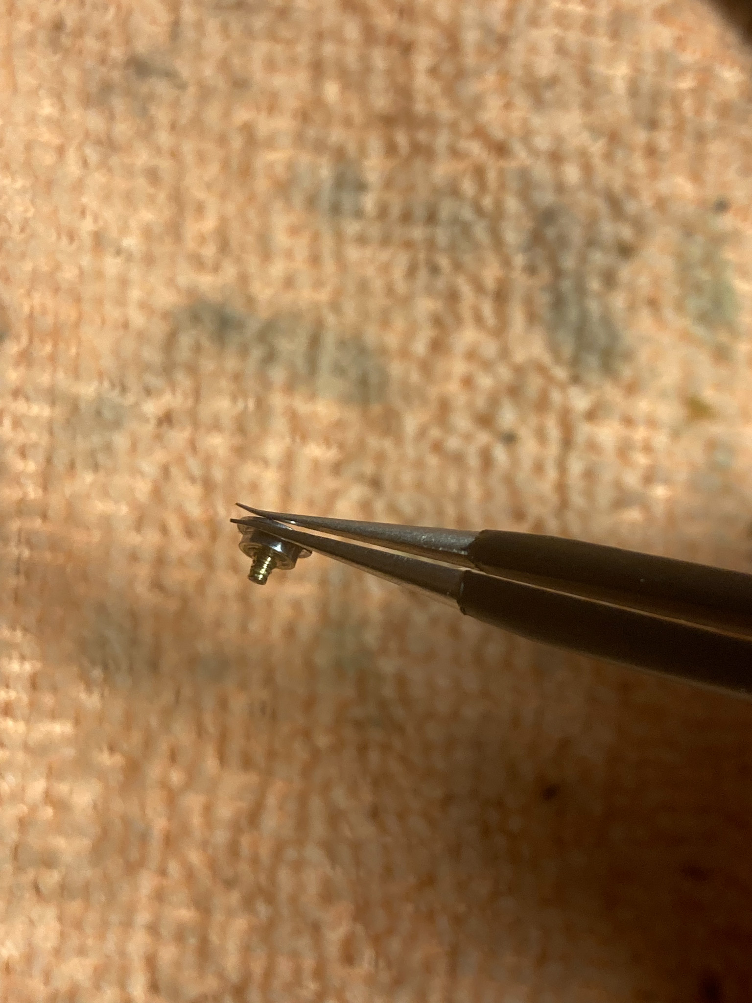 You’ve got the right idea. It passes through the aperture scale and into the shutter cover plate (exactly like a normal scale screw). I think it might just be an M1 screw in which case maybe I can source a screw and washer that could work.
