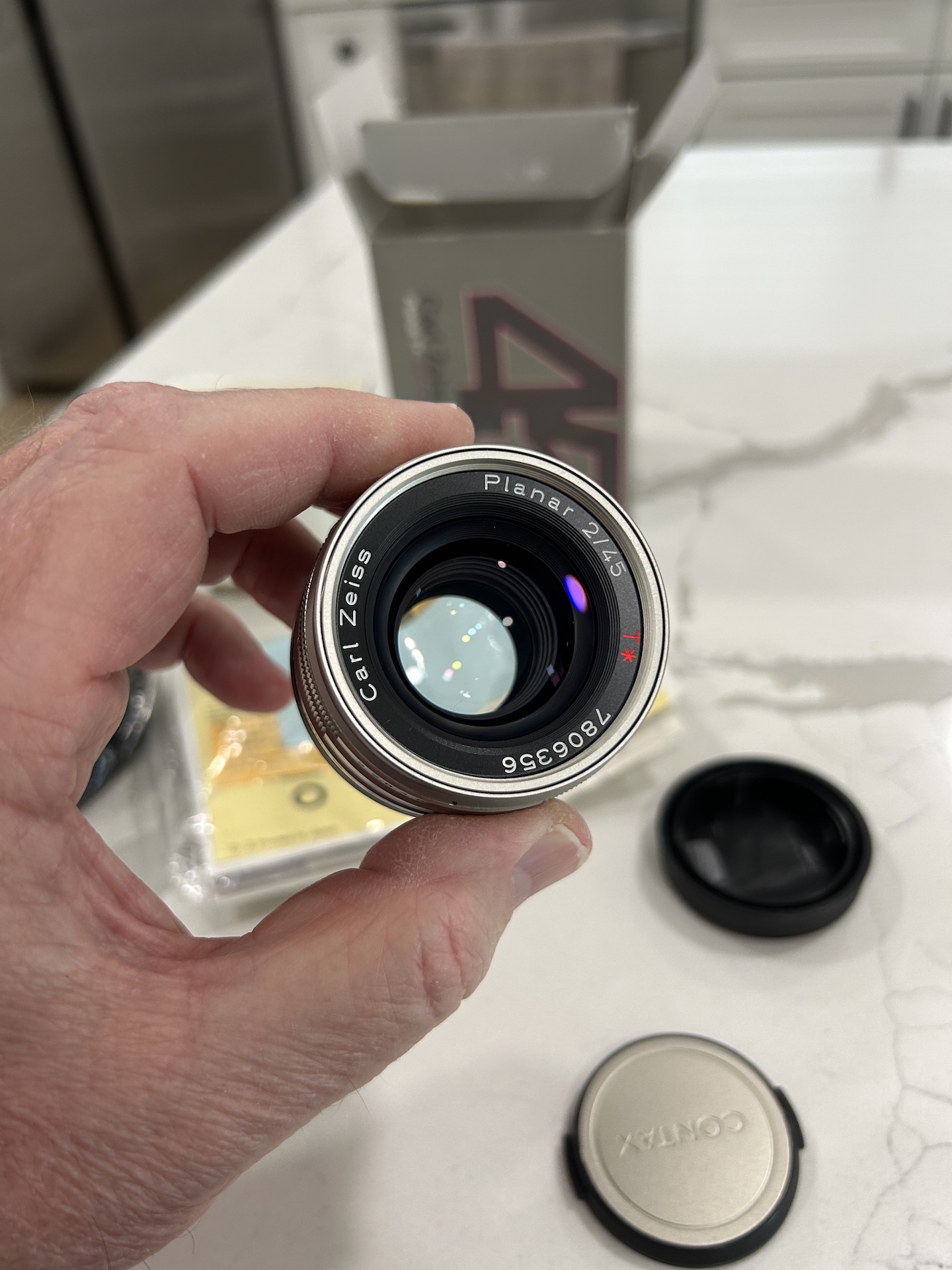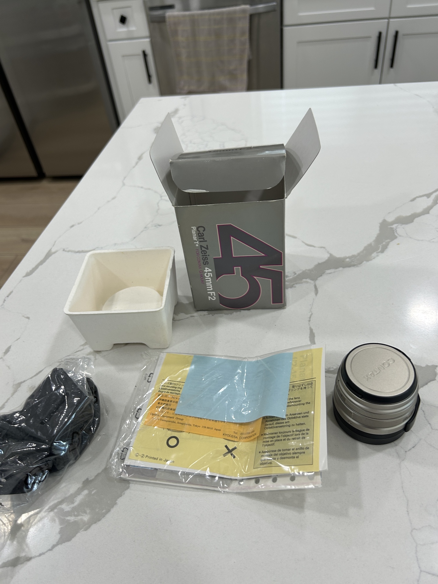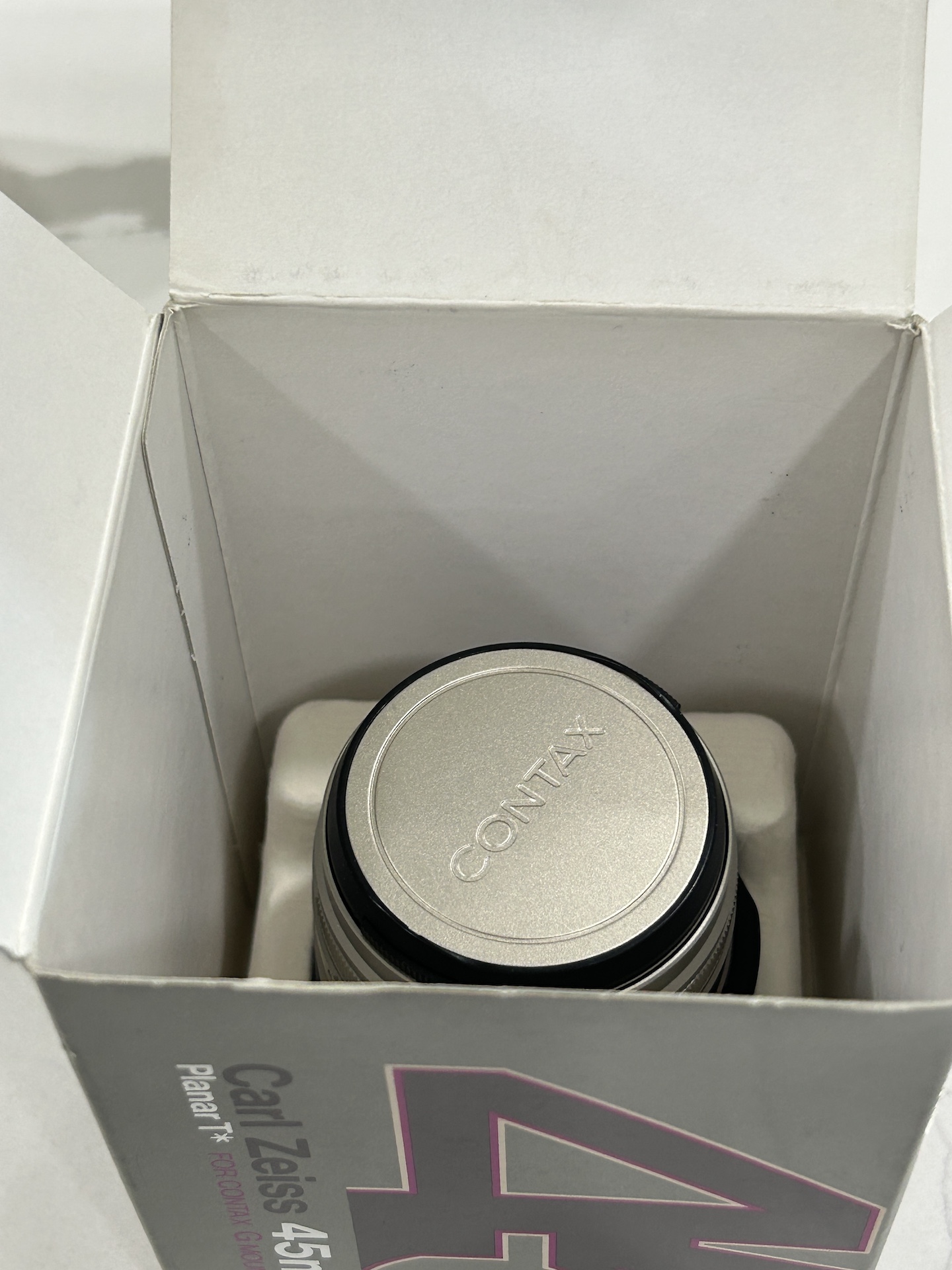 I am selling a boxed Contax 45mm F2 T* Planar for G-Mount Contax rangefinders in minty condition. The sale includes the lens, original caps, box, fine leather lens pouch (still in its plastic wrapping), packaging and paperwork.