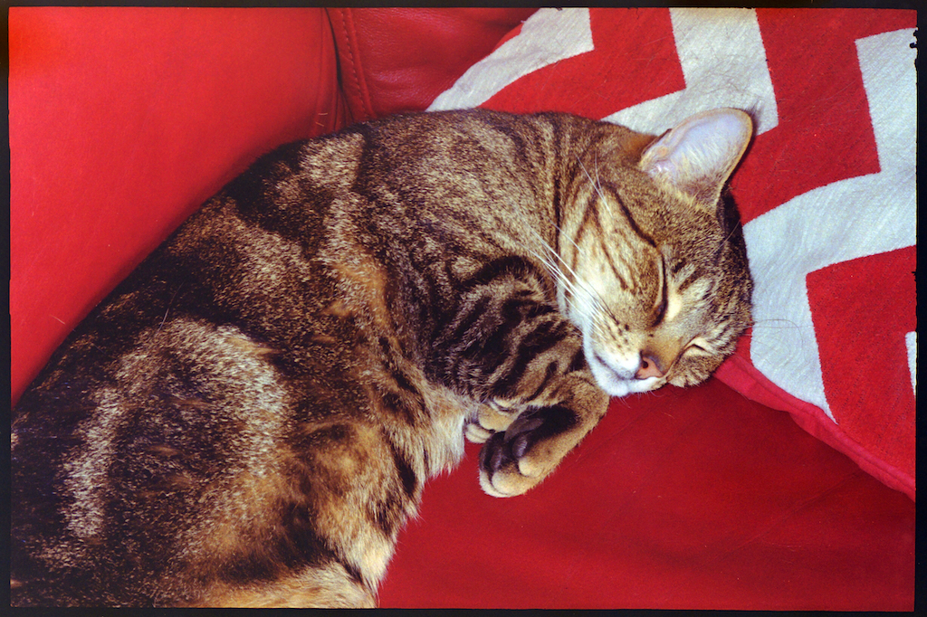 The bus stop pic doesn't look to have a blue cast on my set up, if anything a little yellow. Must be monitors I think though I did apply some corrections to colour/density. The cat is exactly as it came out of the camera and inverted as described with nothing further applied. It is a flash shot which probably makes for more consistency.