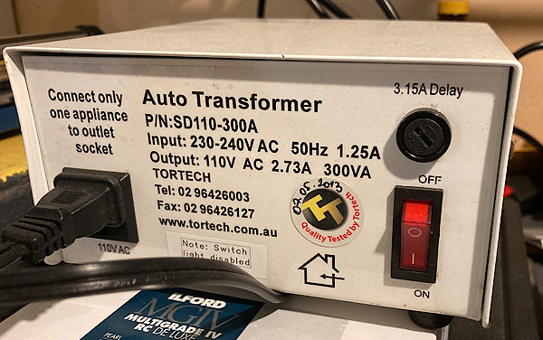 By the way, one option might be to buy a small self-contained solar power unit with battery storage. I haven't looked into the issue of whether these are available with 110V/60Hz output or what the cost would be. For operating your darkroom something might that might provide plenty of output.