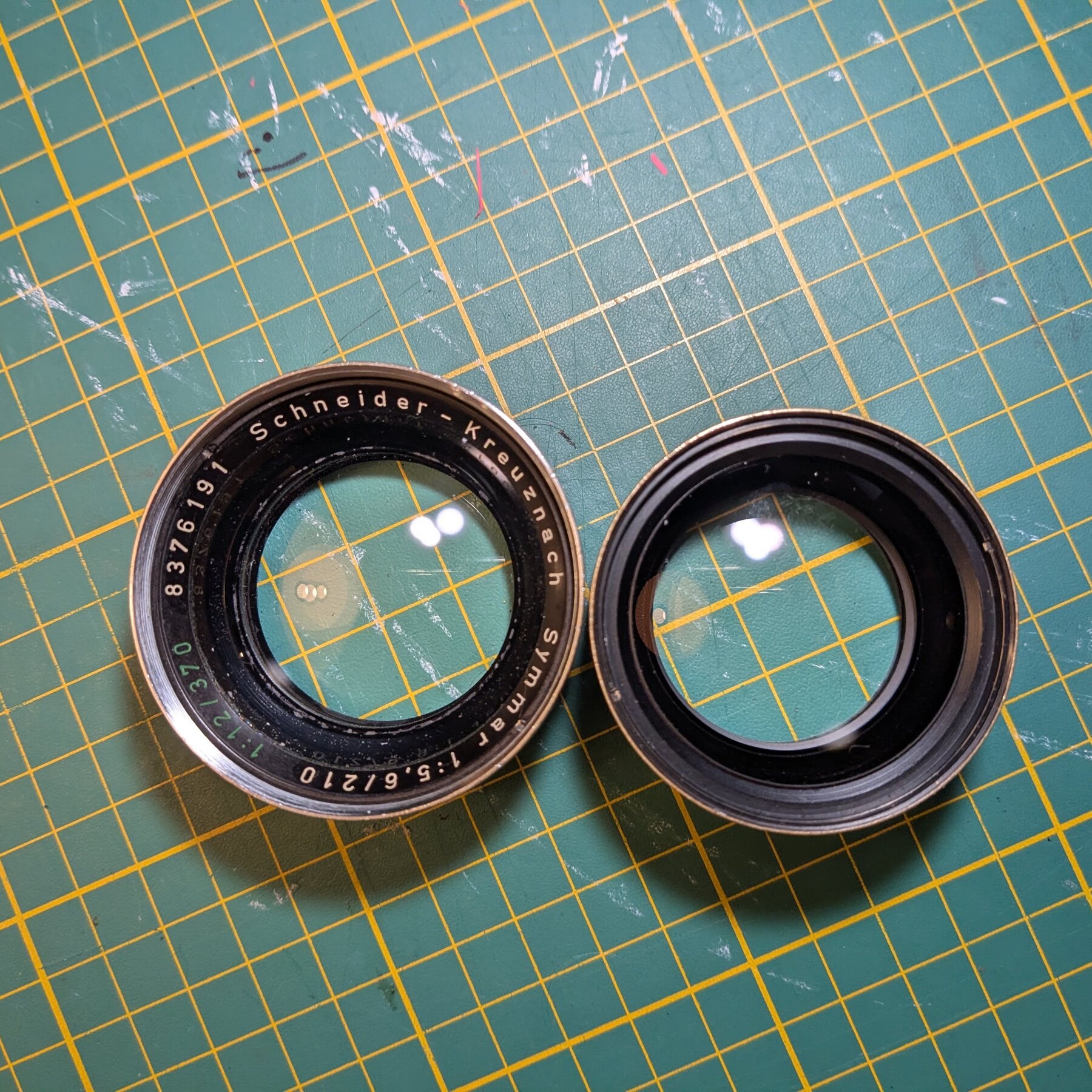 No retaining ring but a convertible Schneider Symmar 5.6/210 (12/370) is included. Usable but glass has small scratches.