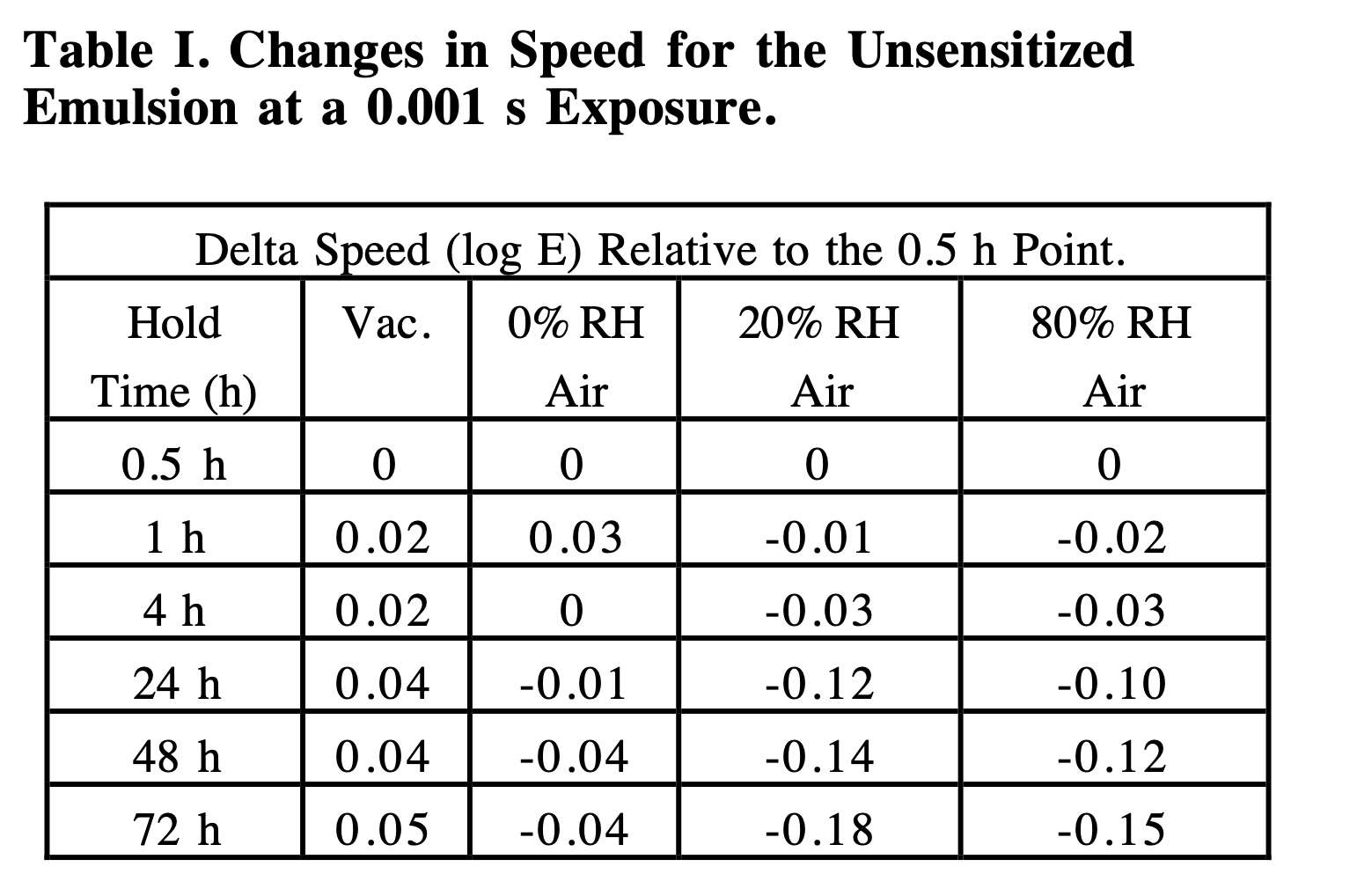 Latent image fades much faster in the first minutes and hour after exposure, until it reaches a very slightly slanted plateau. A plateau that stays ≈ level for months and even decades esp. with freezing.