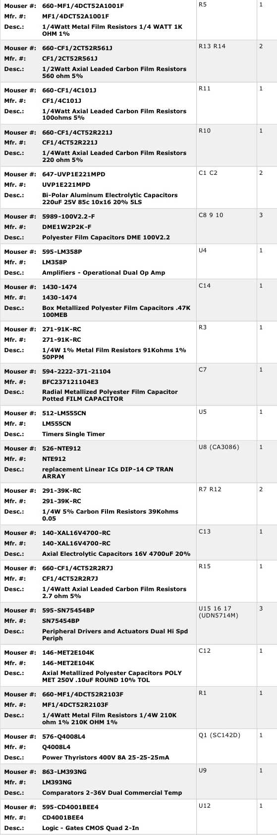 Component lists, re-uploaded.