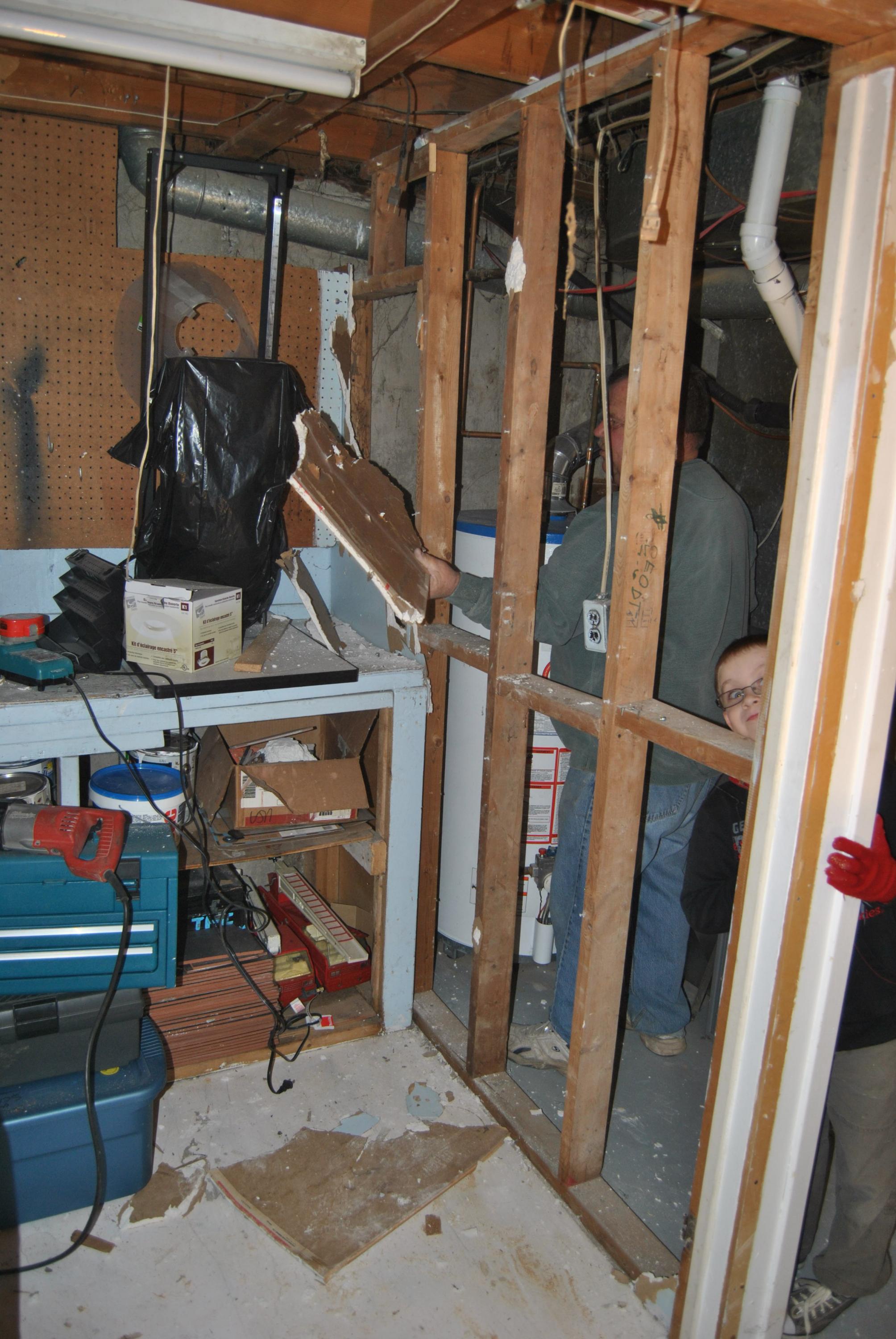 When we first started the demo my furnace and water tank were in a little closed in area. We think they tore down a wall to install the furnace I have been in the house for 7 years furnace was new when we moved in. water tank I had put in right after we moved in. I thought by taking down that little wall I would be able to open up the work area a bit. I hope these photos are helping because all this advise I am getting is really helping me. I want to do this right and safe and I thank you all for the input.