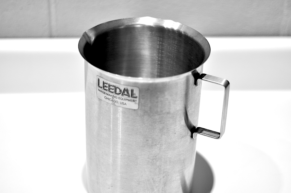 I got a full set of these Stainless Steel Leedal graduates at Photorama for almost nothing. I don't know how I got along without this 4 liter one all these years. I was using a common bucket. This is perfect for mixing Dektol, because of the accurate graduated markings.