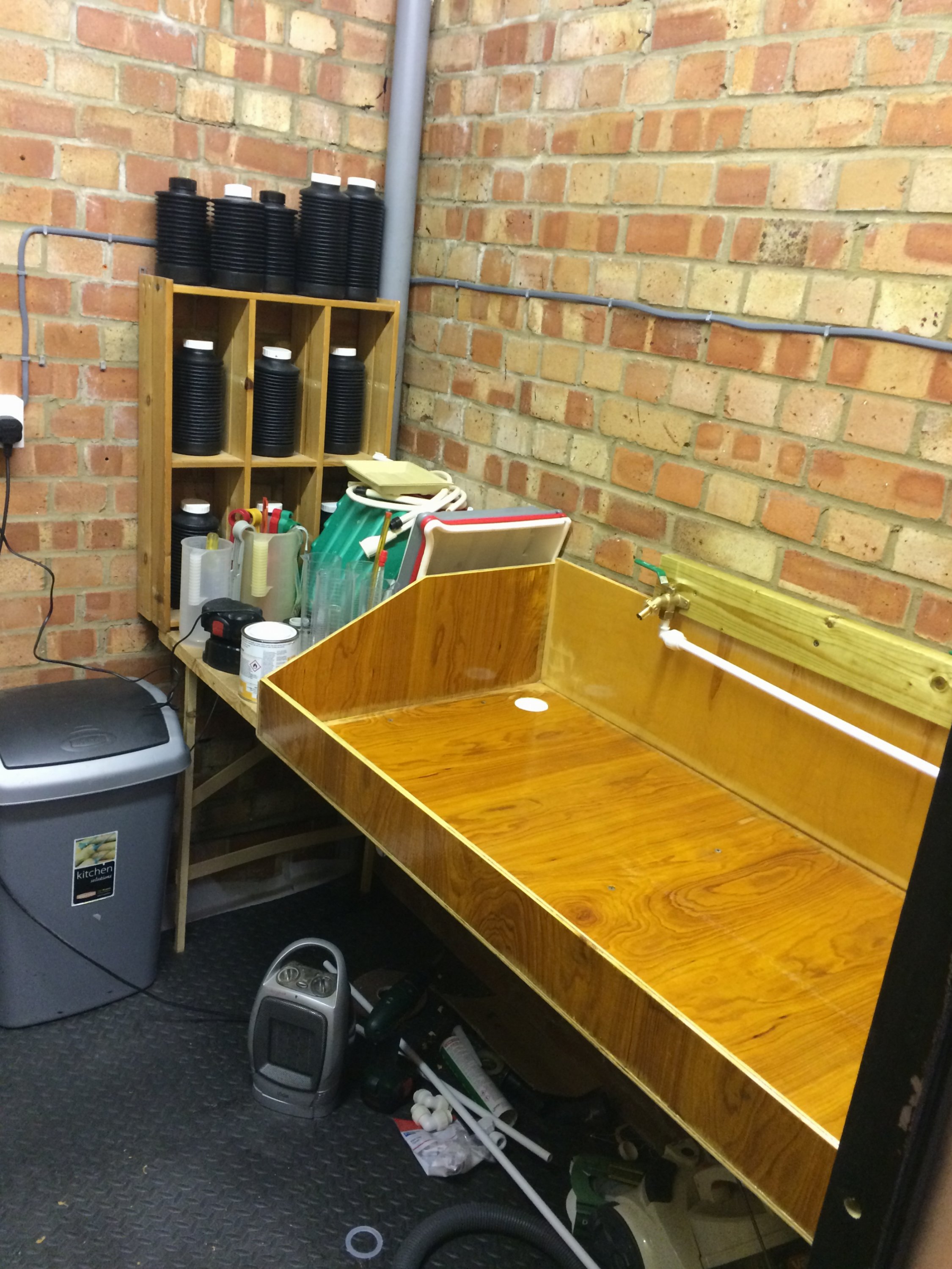 Bottom right is the laundry sink that meets all my wet stuff needs, so I skipped on building an extended sink, and just have a 'wet table' for trays as visible on the right.