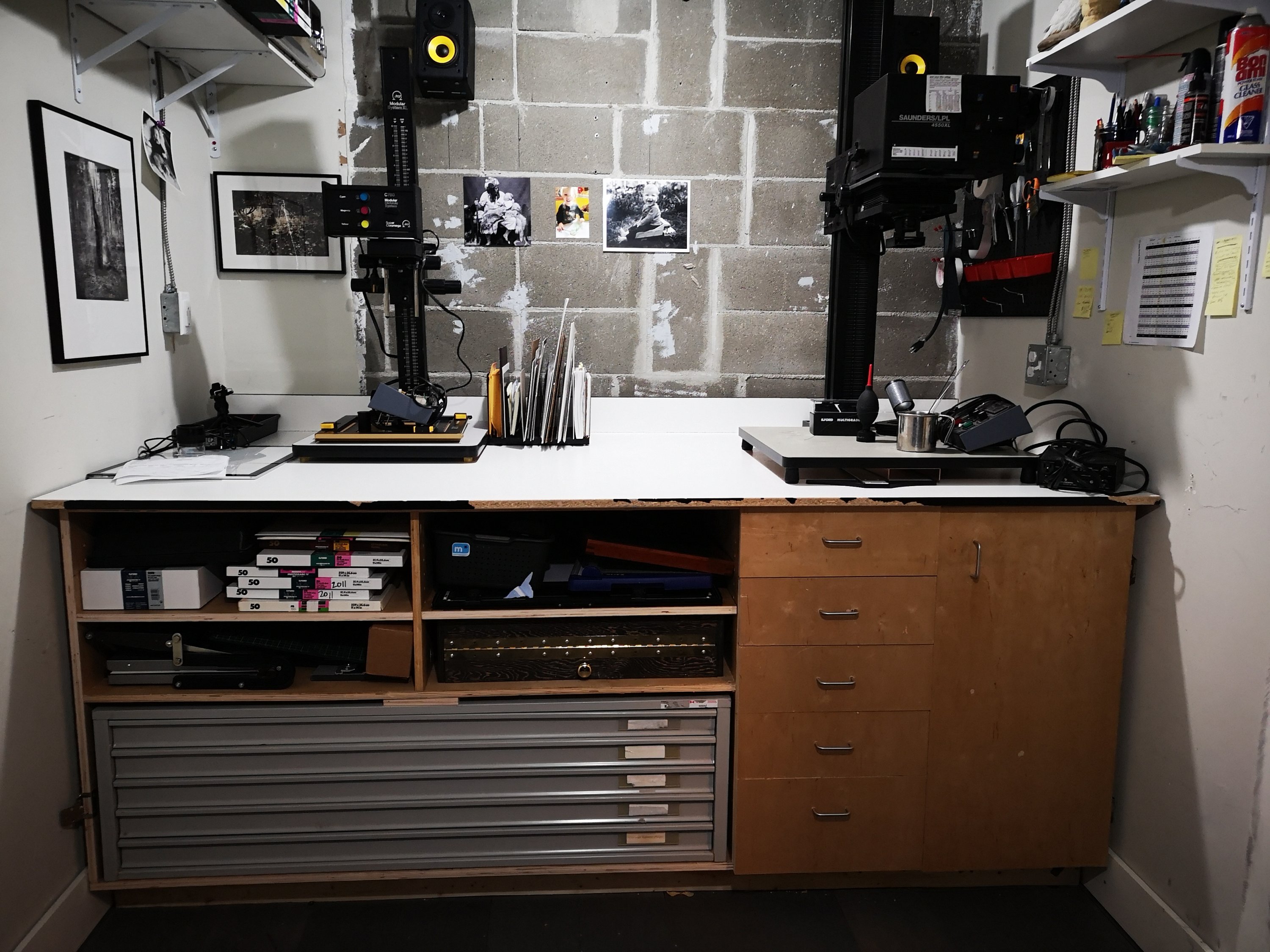 All three enlargers are up, I will likely hold off on the center piece / cart to give it some more design time but now at least I can print!