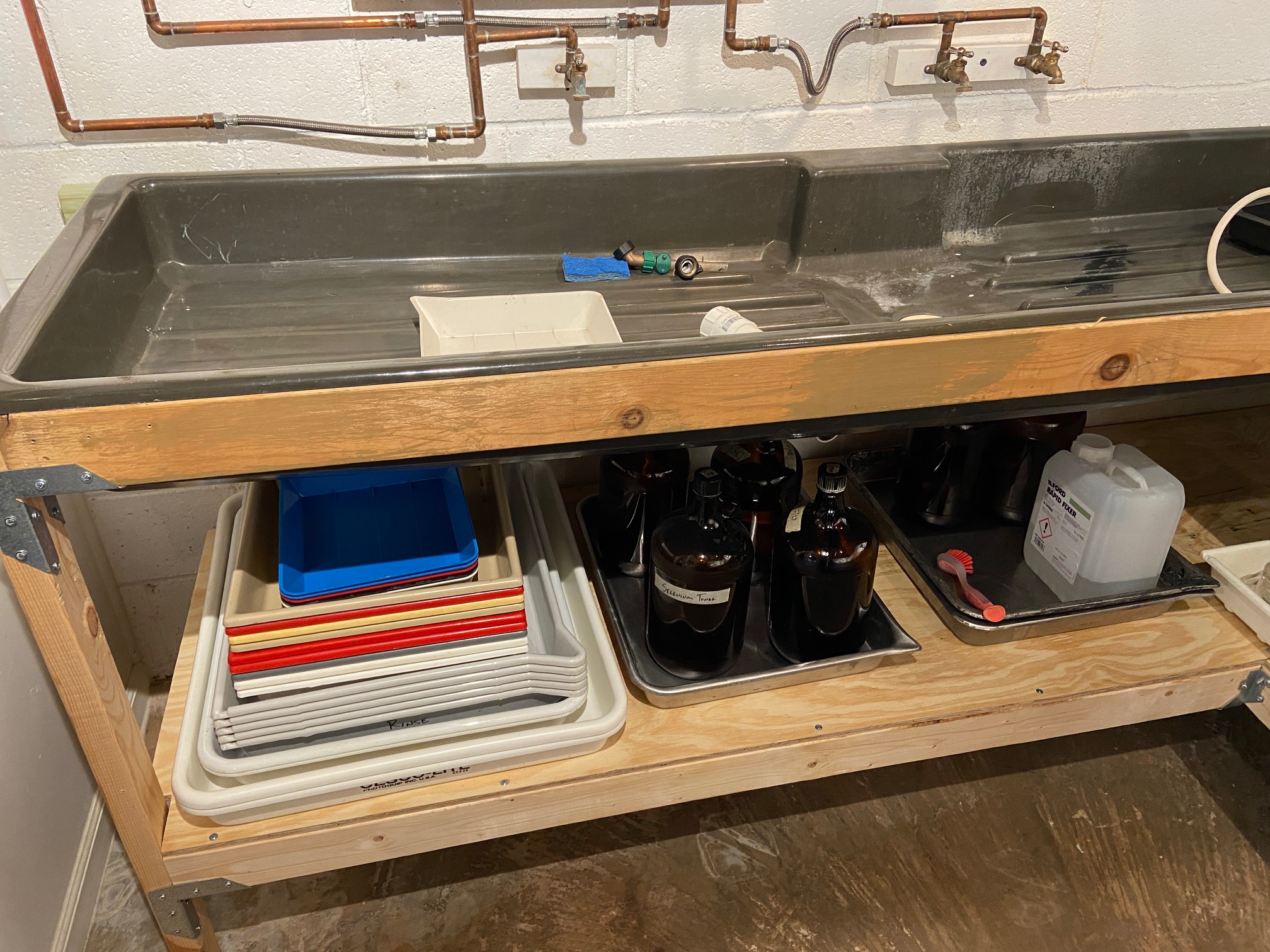) that perfectly fit my enlarger. I then made a platform of sorts for the table made out of 2x2 foot plywood and a 2x3 frame underneath with casters bolted onto it. That was then attached to the bottom of my table. All in, materials cost me about $25