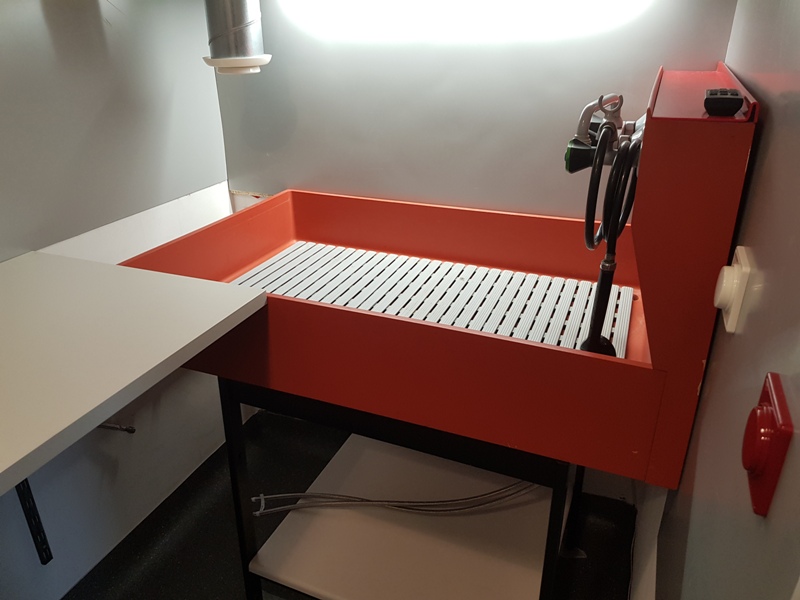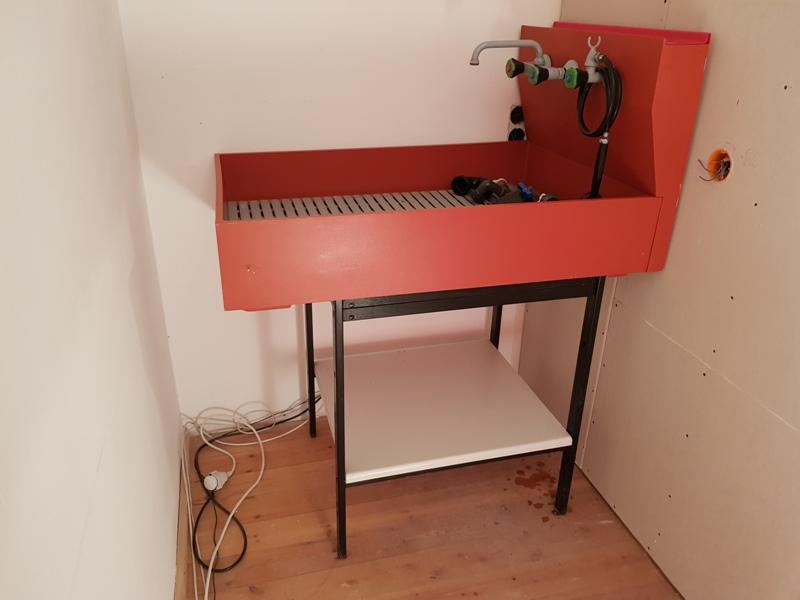 Walls are cladded with 2mm PVC sheet, shelf rack system for the workbench.