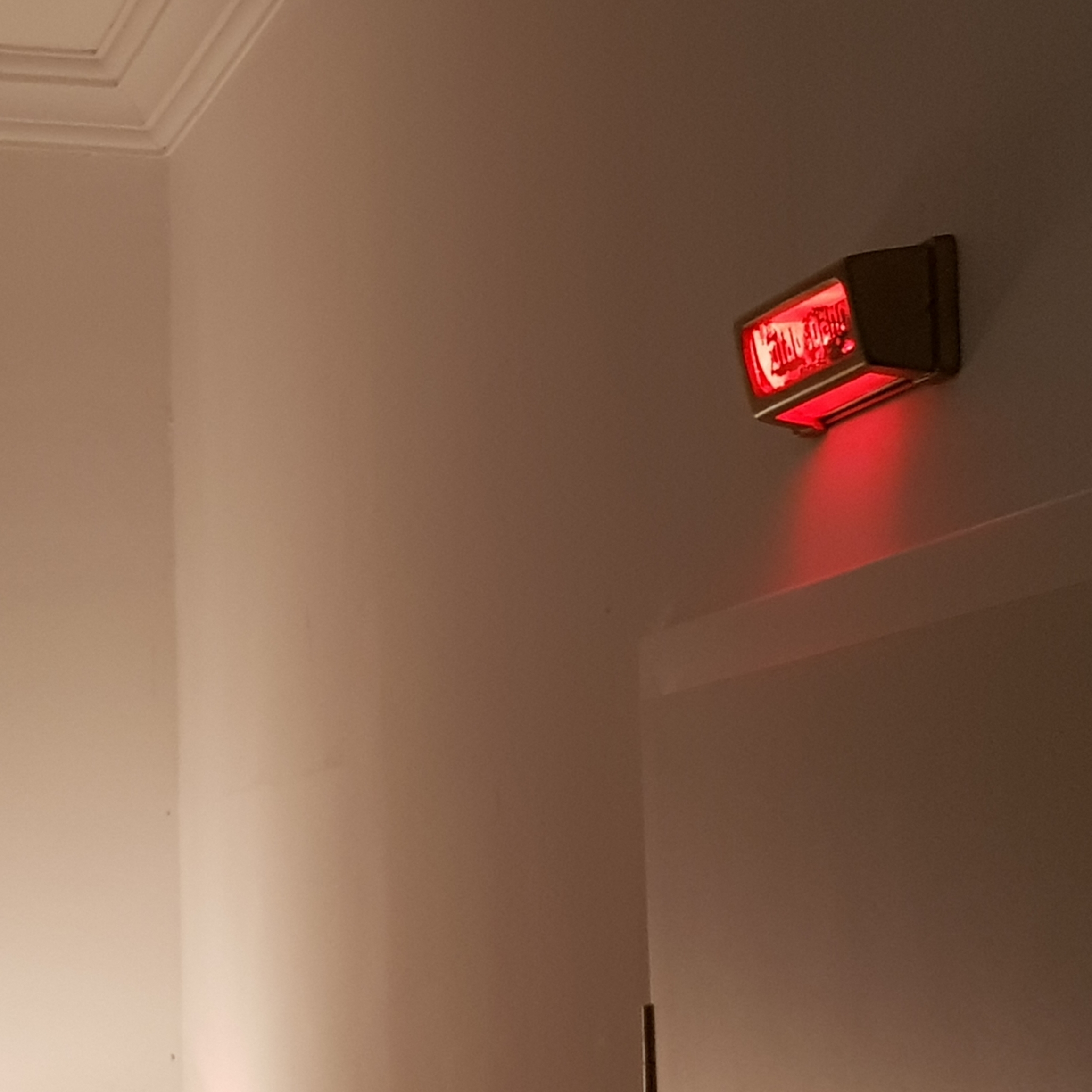 The old emergency exit sign is connected to the red light inside the dr and warns my kids to come in accidentally...