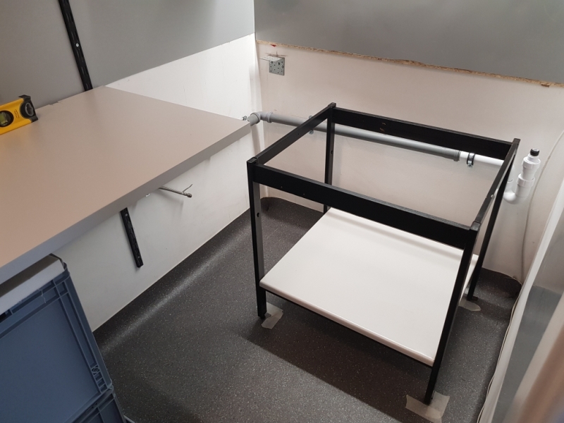 The sink is adjusted to it´s final height.