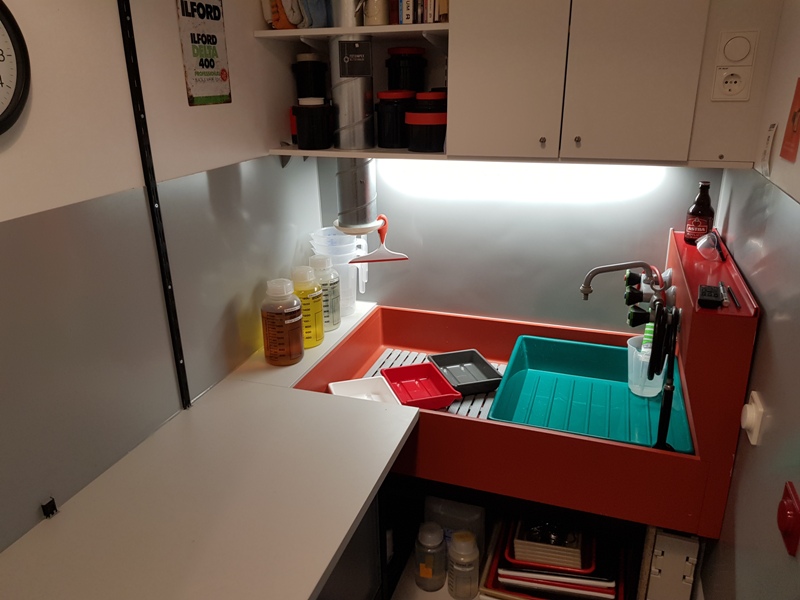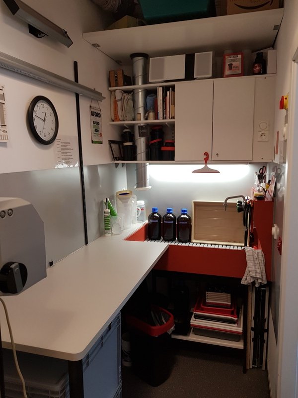 I startet building my darkroom in November last year. Measuring just 14ft x 4 1/2ft space is quite limited. But it´s app. 10ft high, so I´ll build storage space under the ceiling. And the right wall is the wall to the kitchen - water and kitchen hood in easy reach!