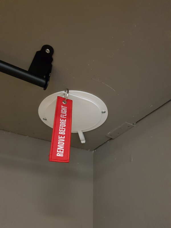 - separation of dry and wet area with a piece of PVC tarpaulin cut and glued to shape